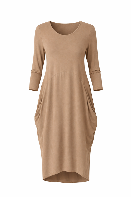 SOHO Bamboo Long Sleeve Midi Dress | Dark Beige