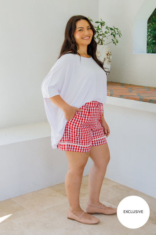 MILAN Lyocell Classic Length Shorts | Red Gingham | FINAL SALE