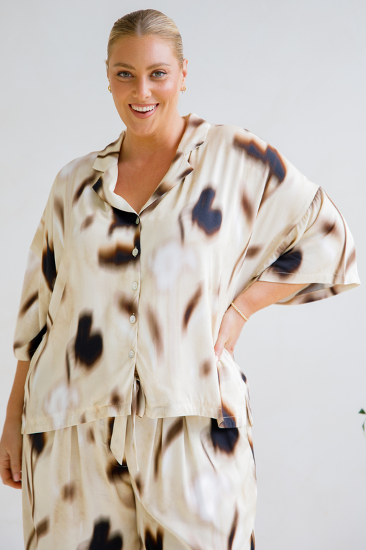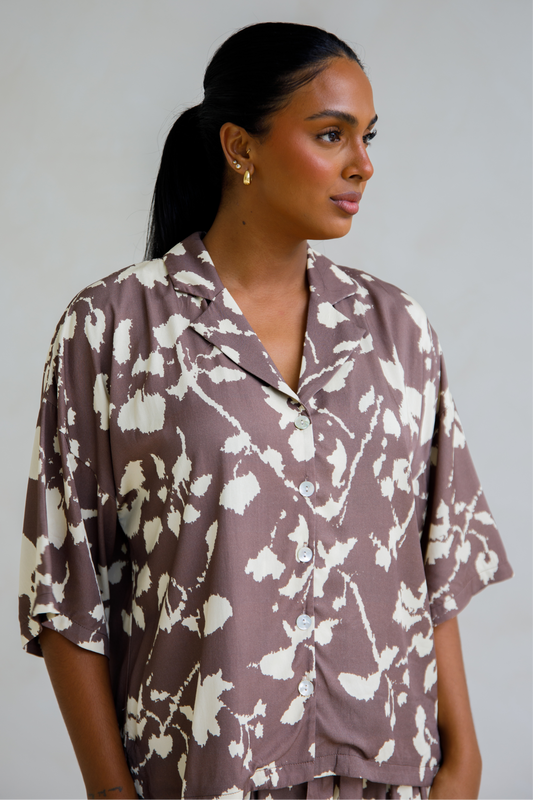 KLARA Rayon Short Sleeve Shortline Shirt | Chocolate Havanna | FINAL SALE