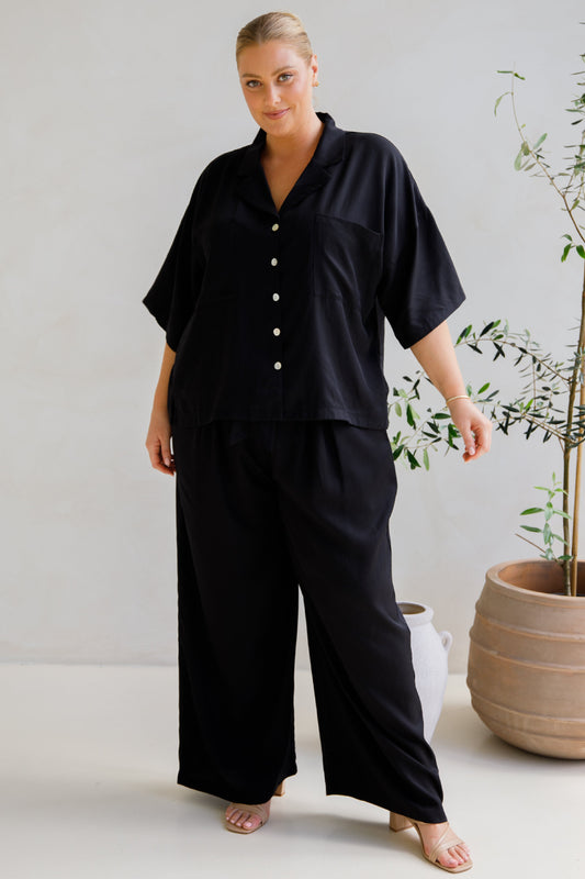 LULU Lyocell Short Sleeve Shortline Shirt | Black | FINAL SALE