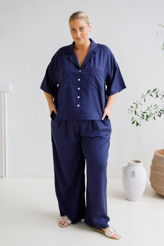 LULU Lyocell Short Sleeve Shortline Shirt | Navy | FINAL SALE