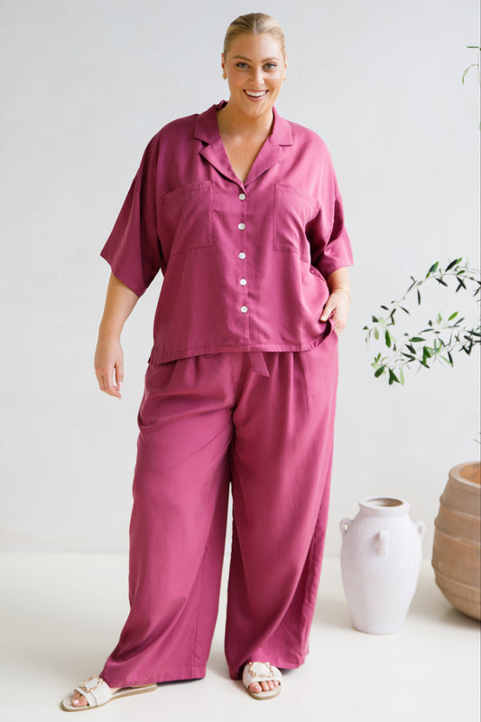 LULU Lyocell Short Sleeve Shortline Shirt | Rosewood | FINAL SALE