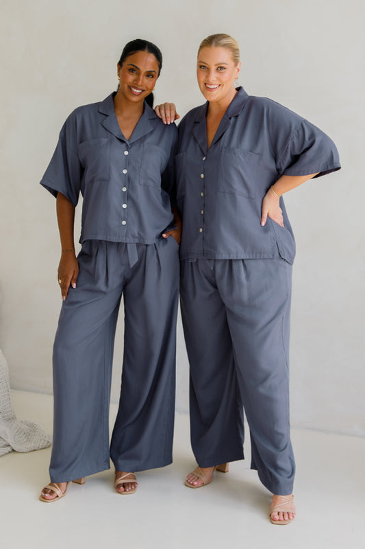 LULU Lyocell Short Sleeve Shortline Shirt | Slate | FINAL SALE