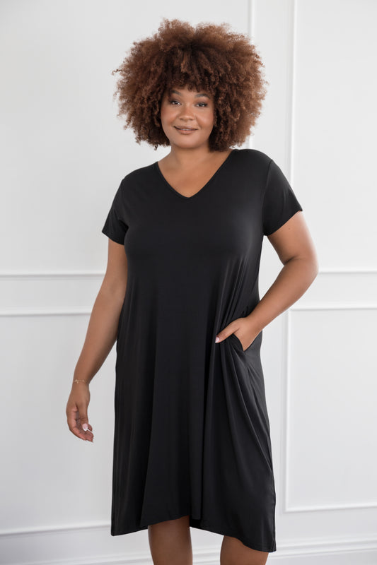 T-SHIRT Bamboo Short Sleeve Classic/Midi Dress | Black