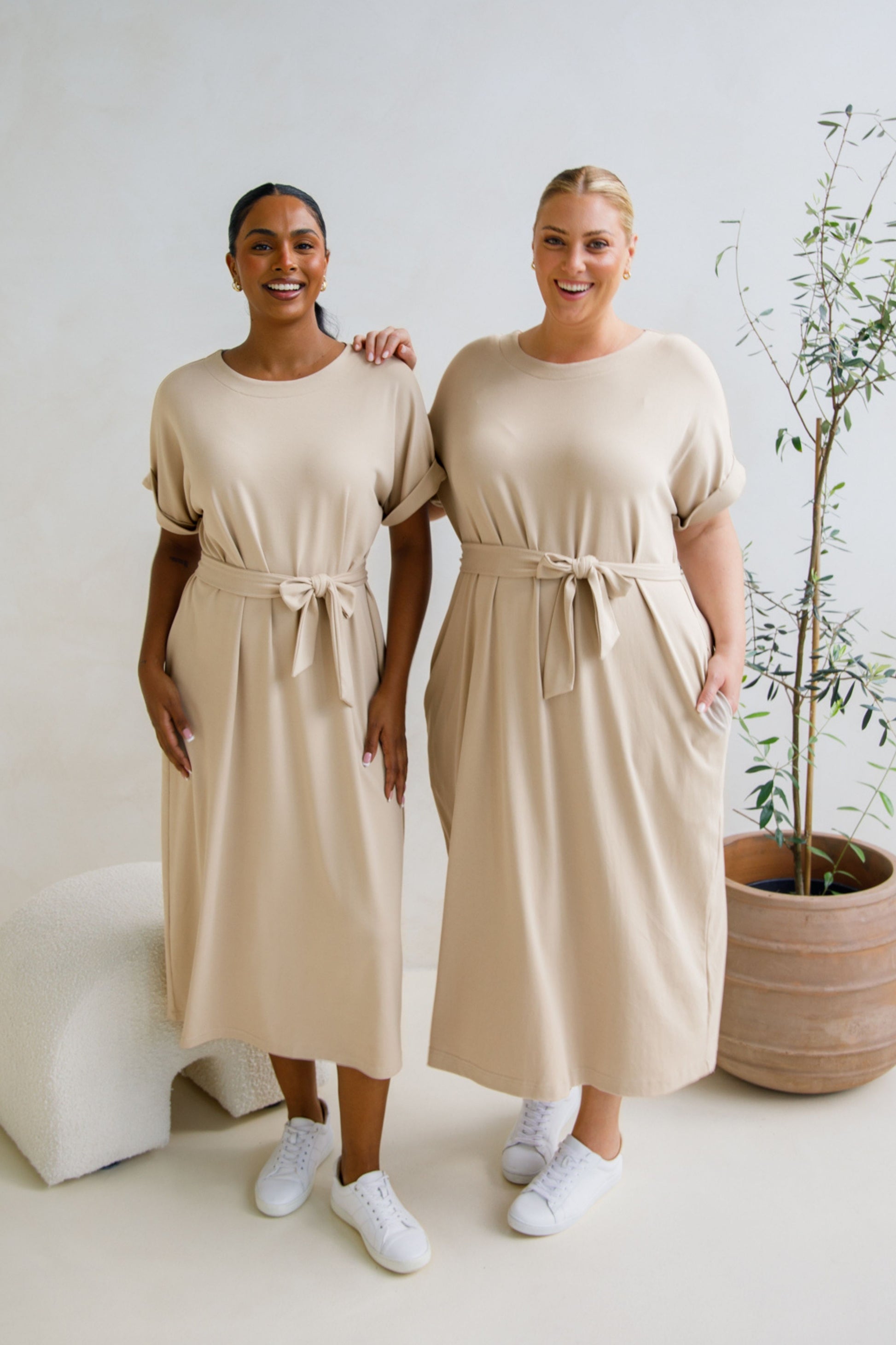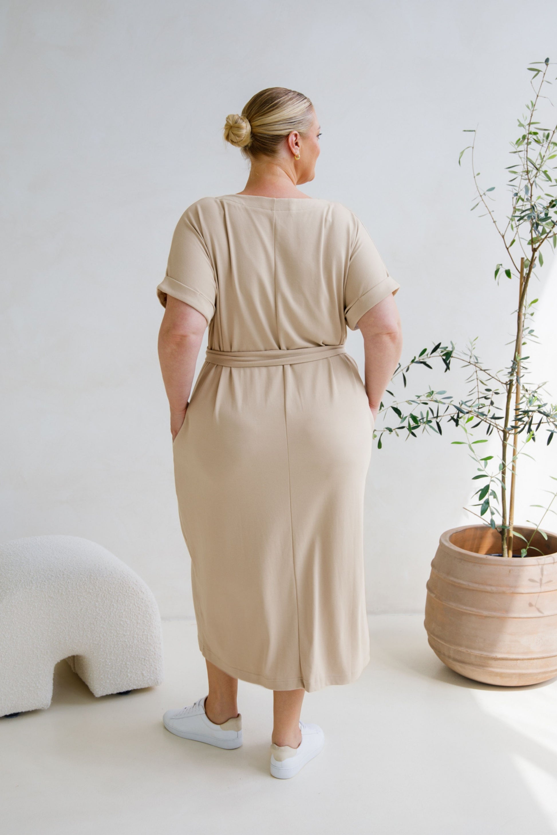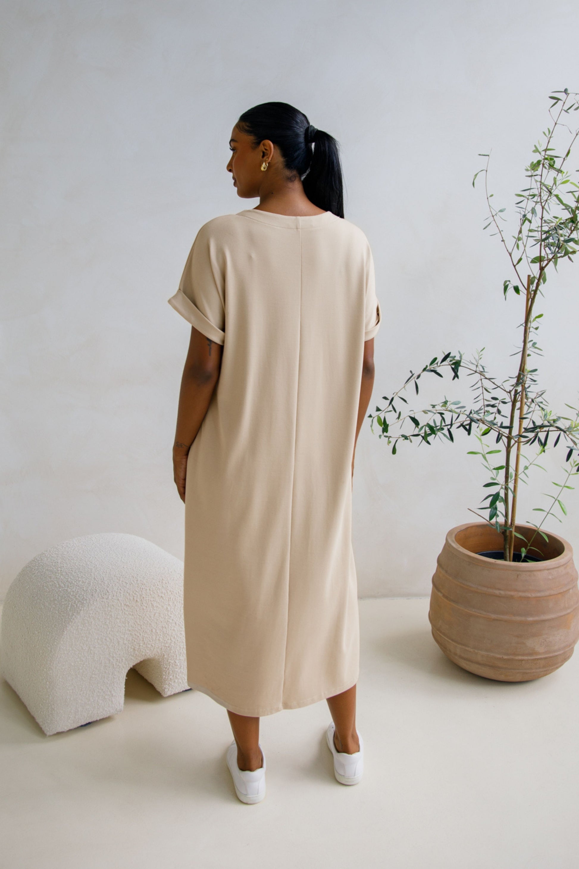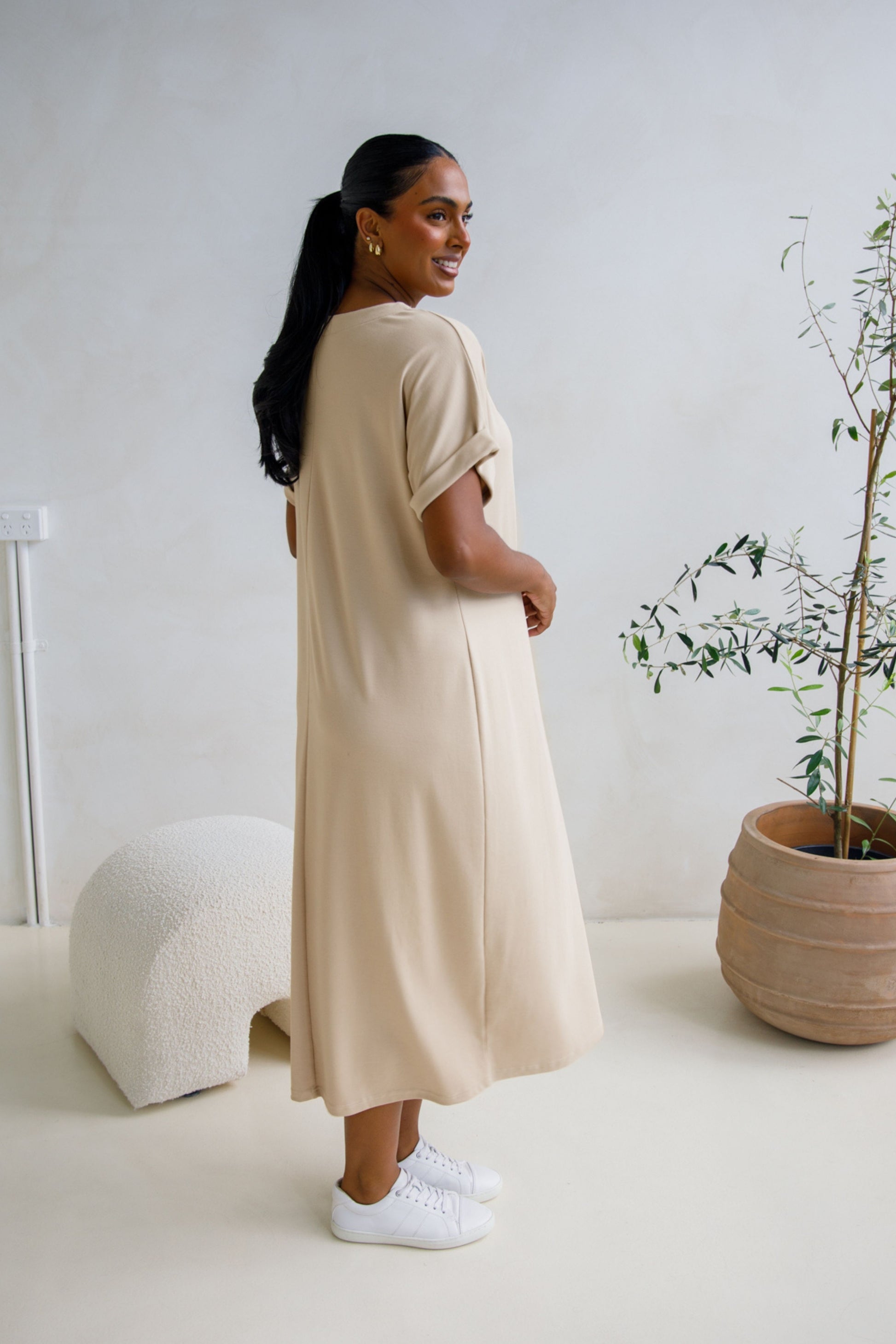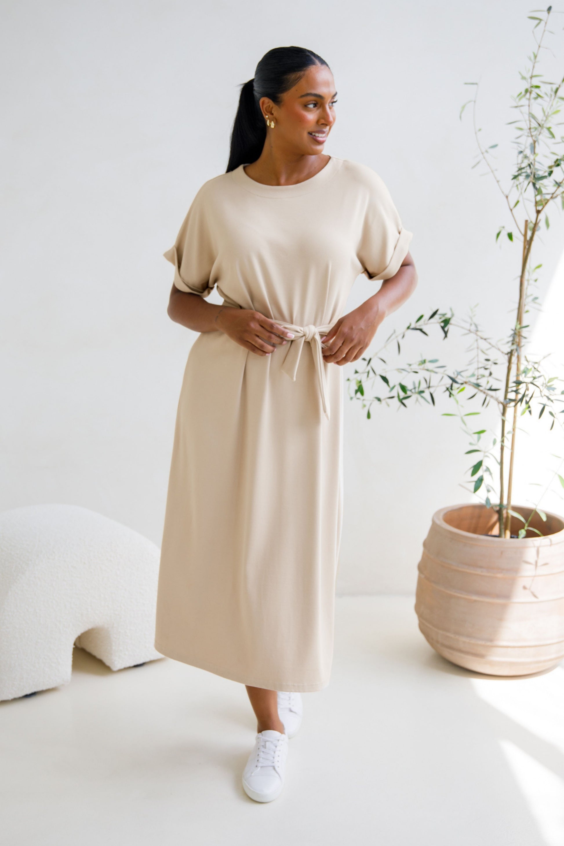 ALTHEA Lounge Short Sleeve Midi Dress | Portobello Beige