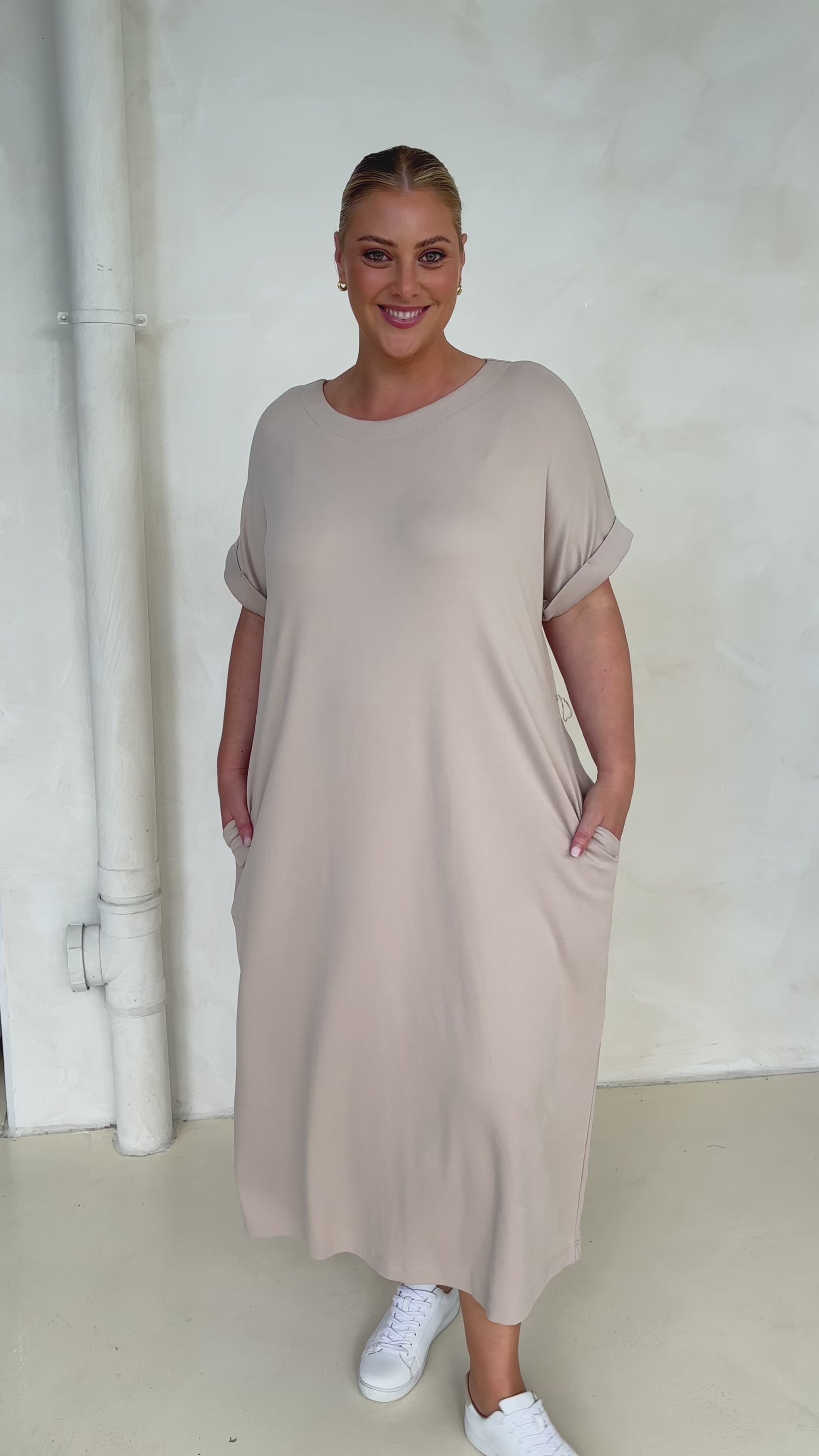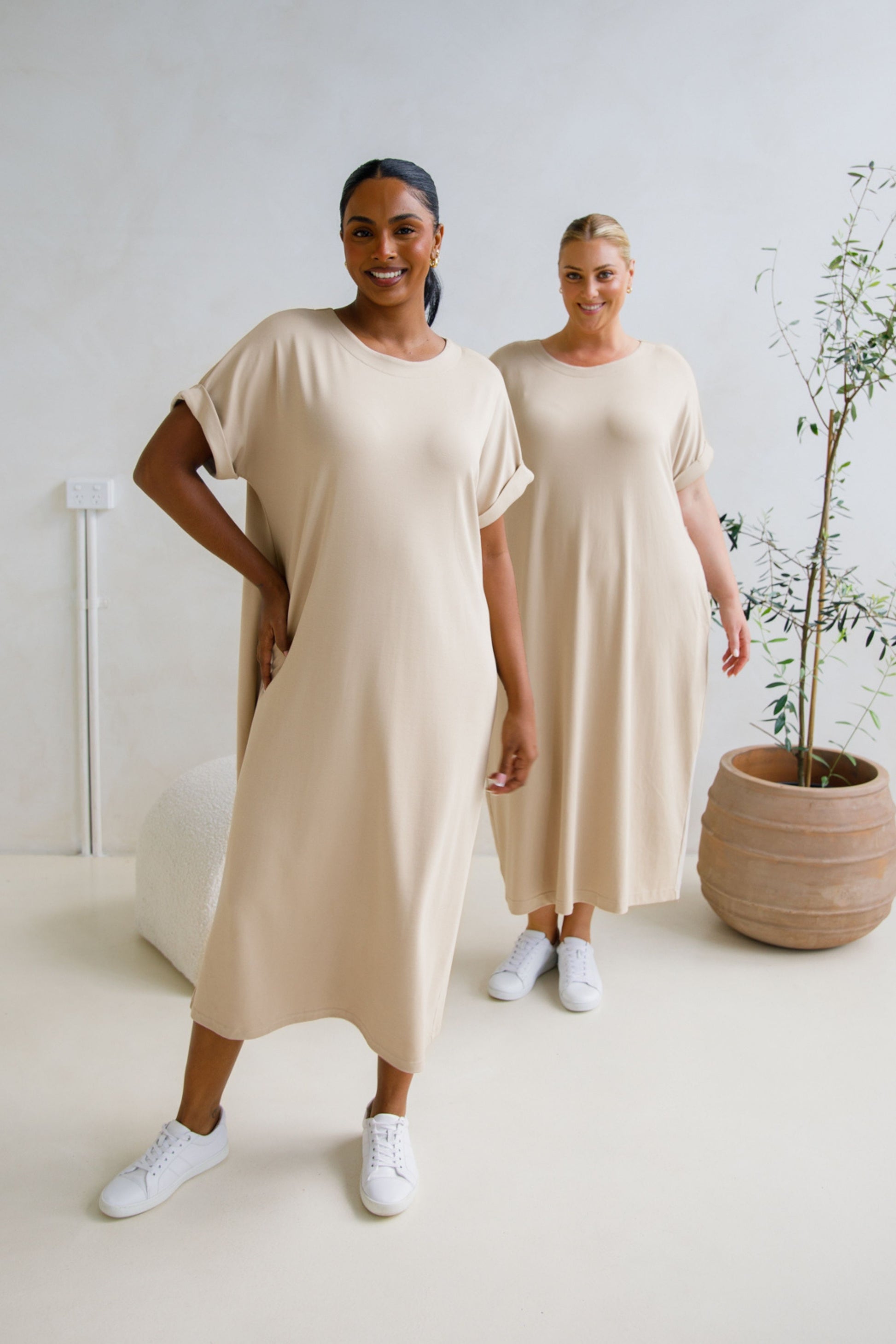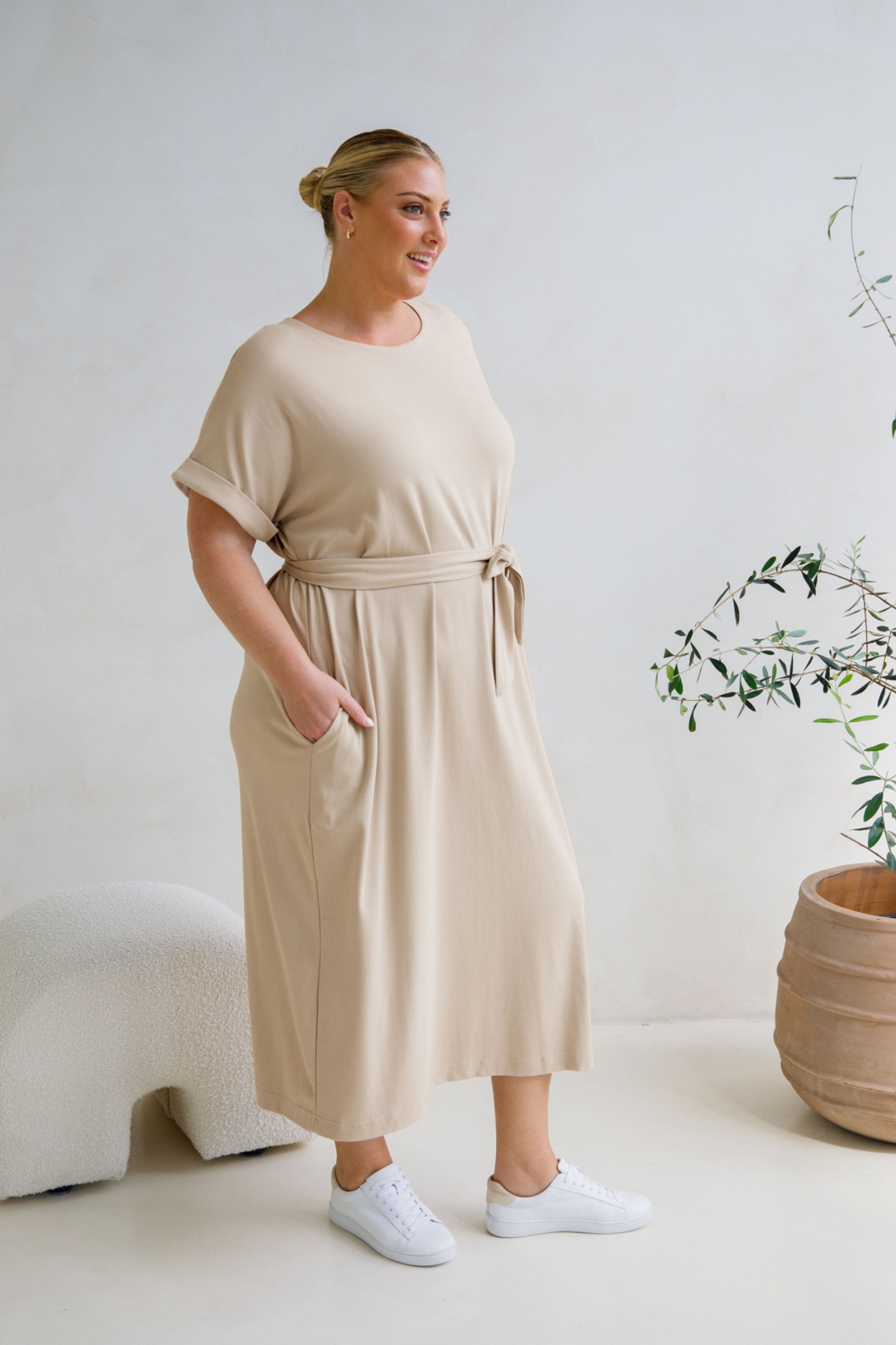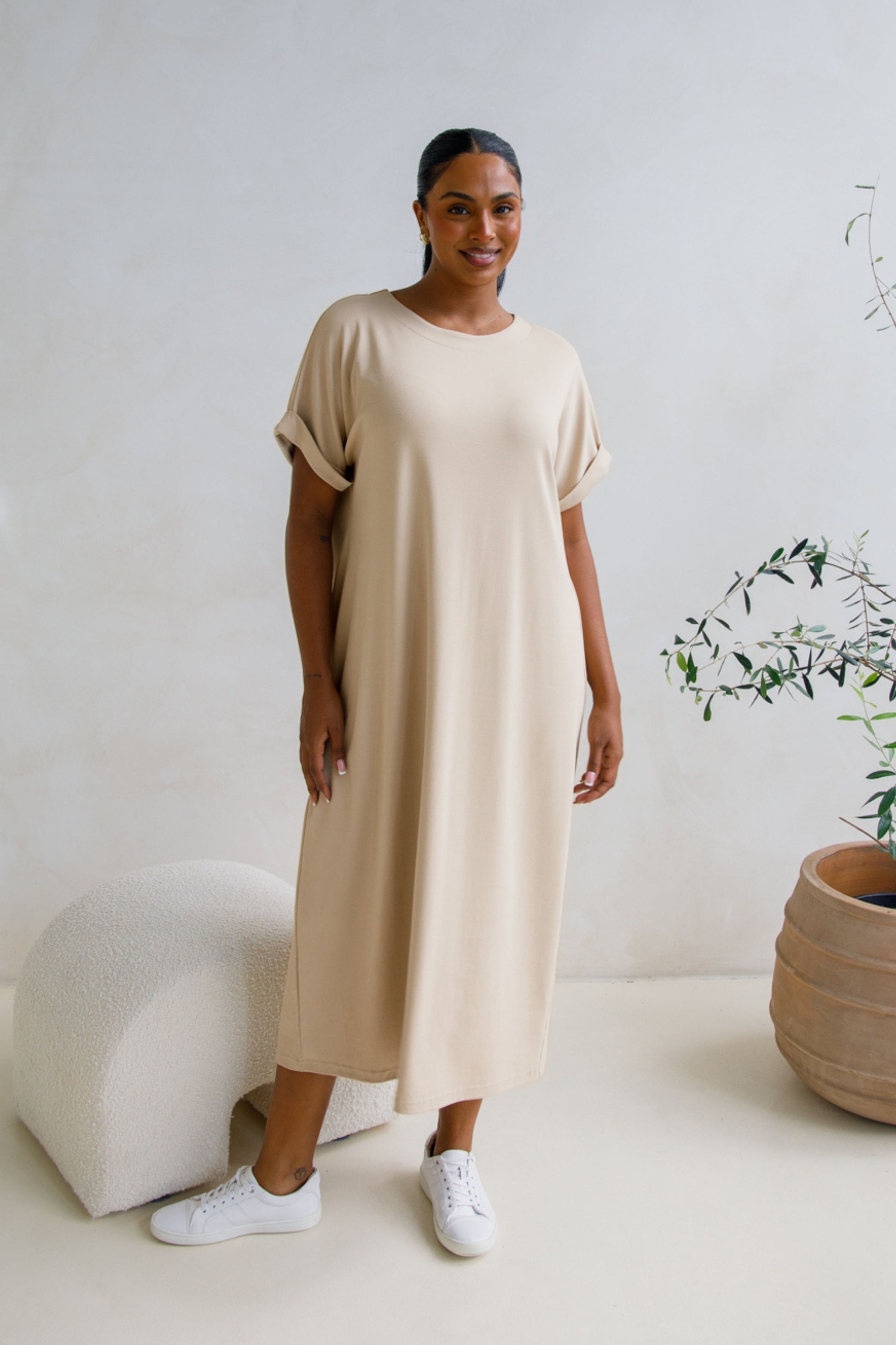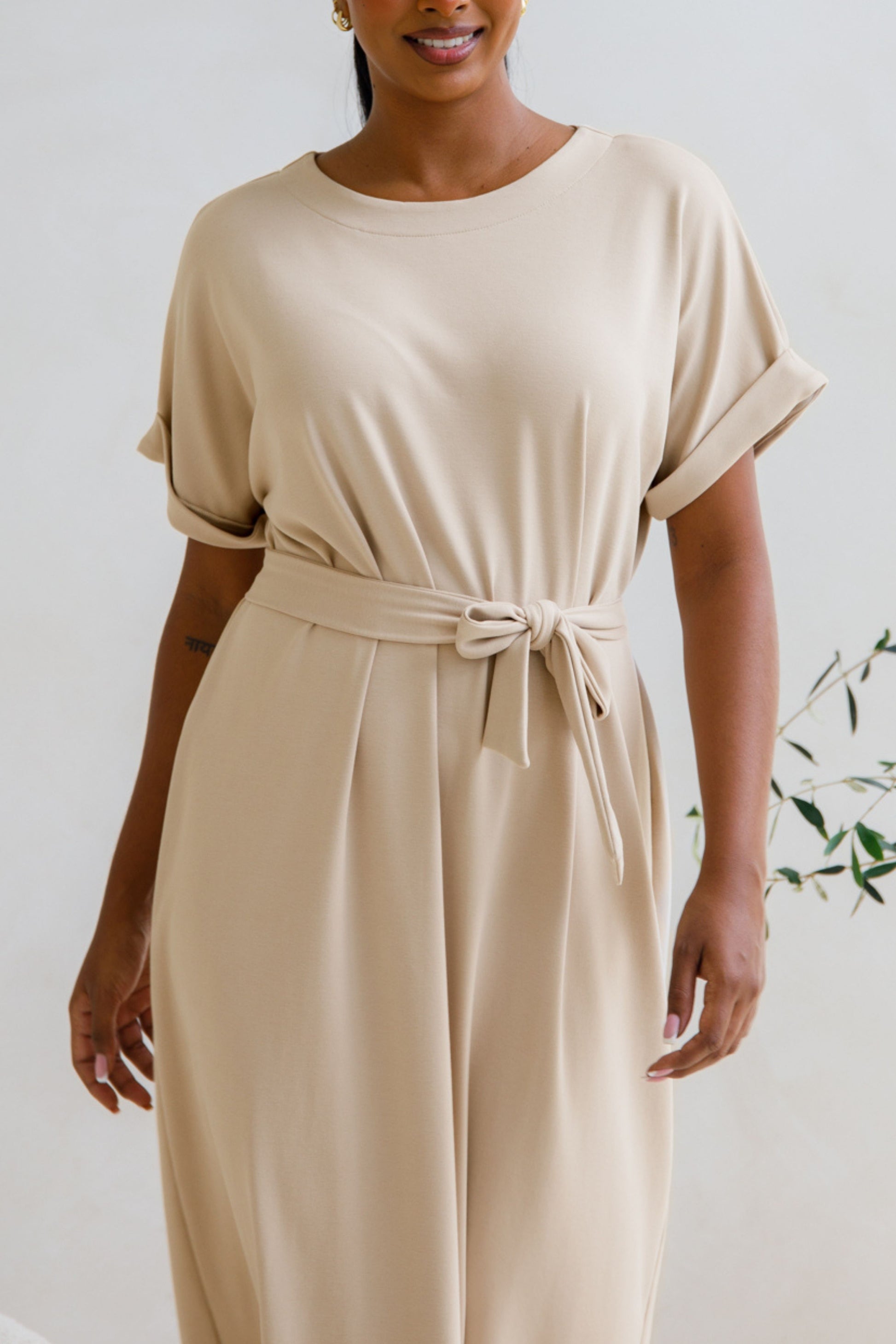 ALTHEA Lounge Short Sleeve Midi Dress | Portobello Beige
