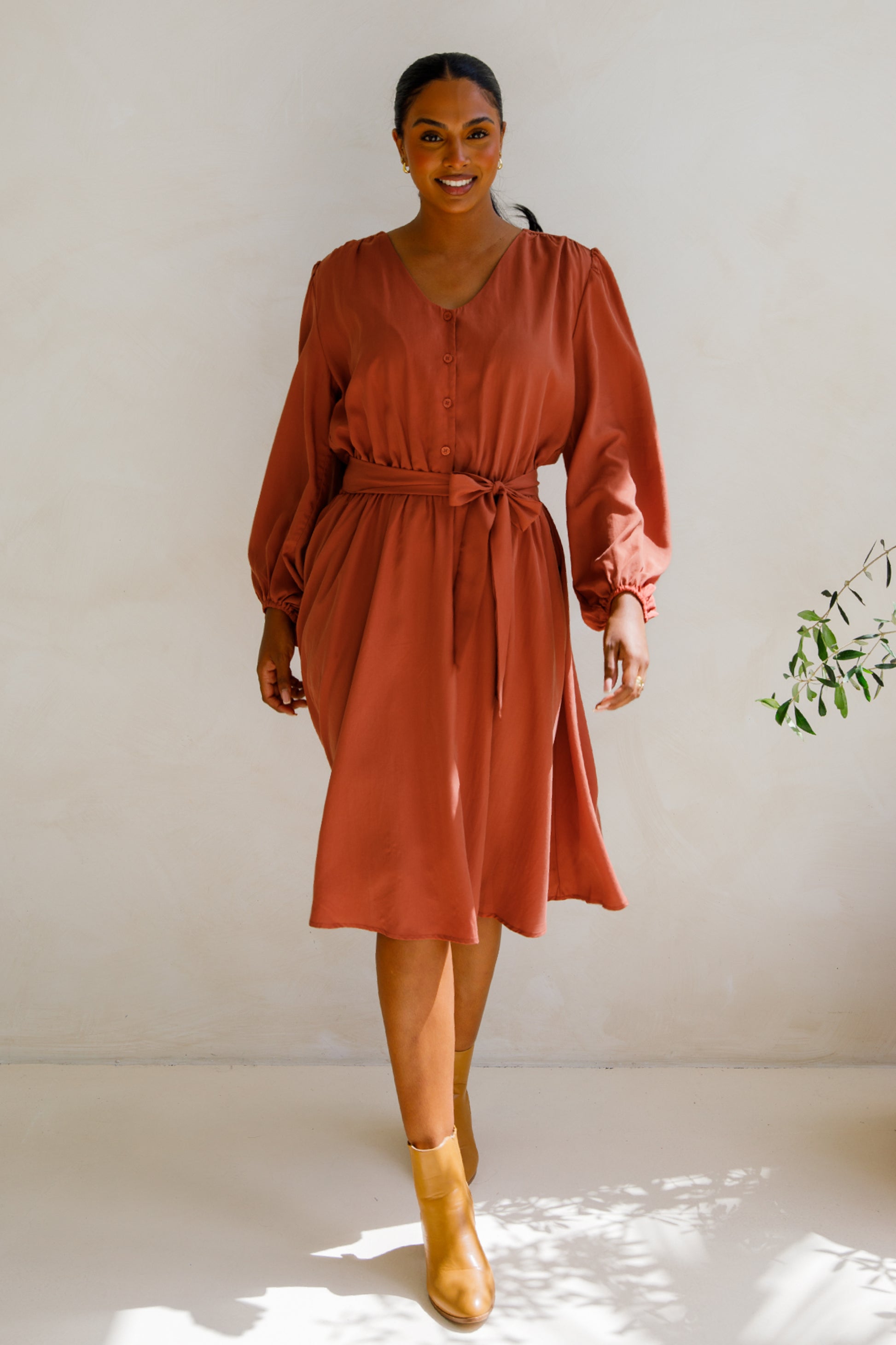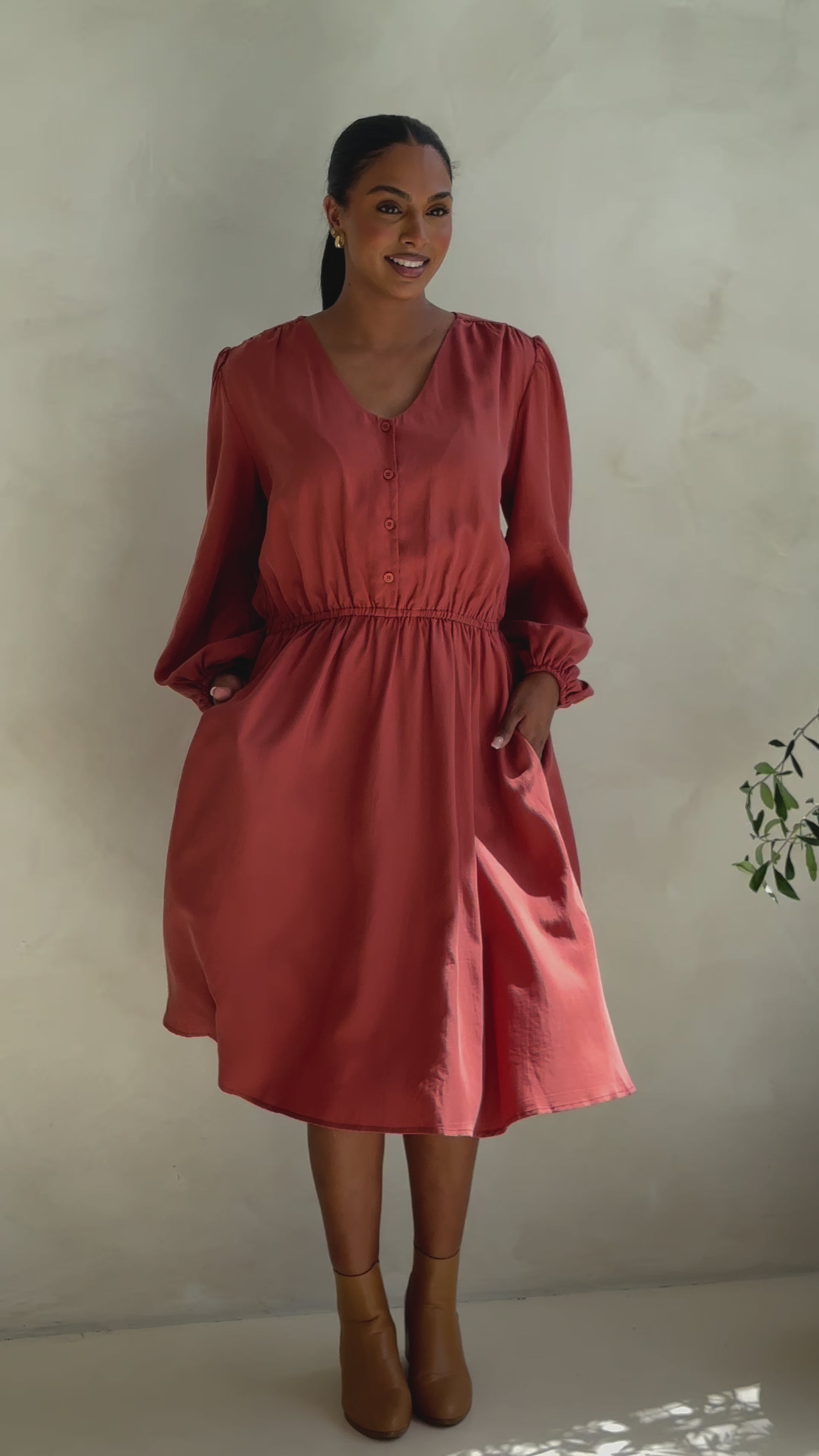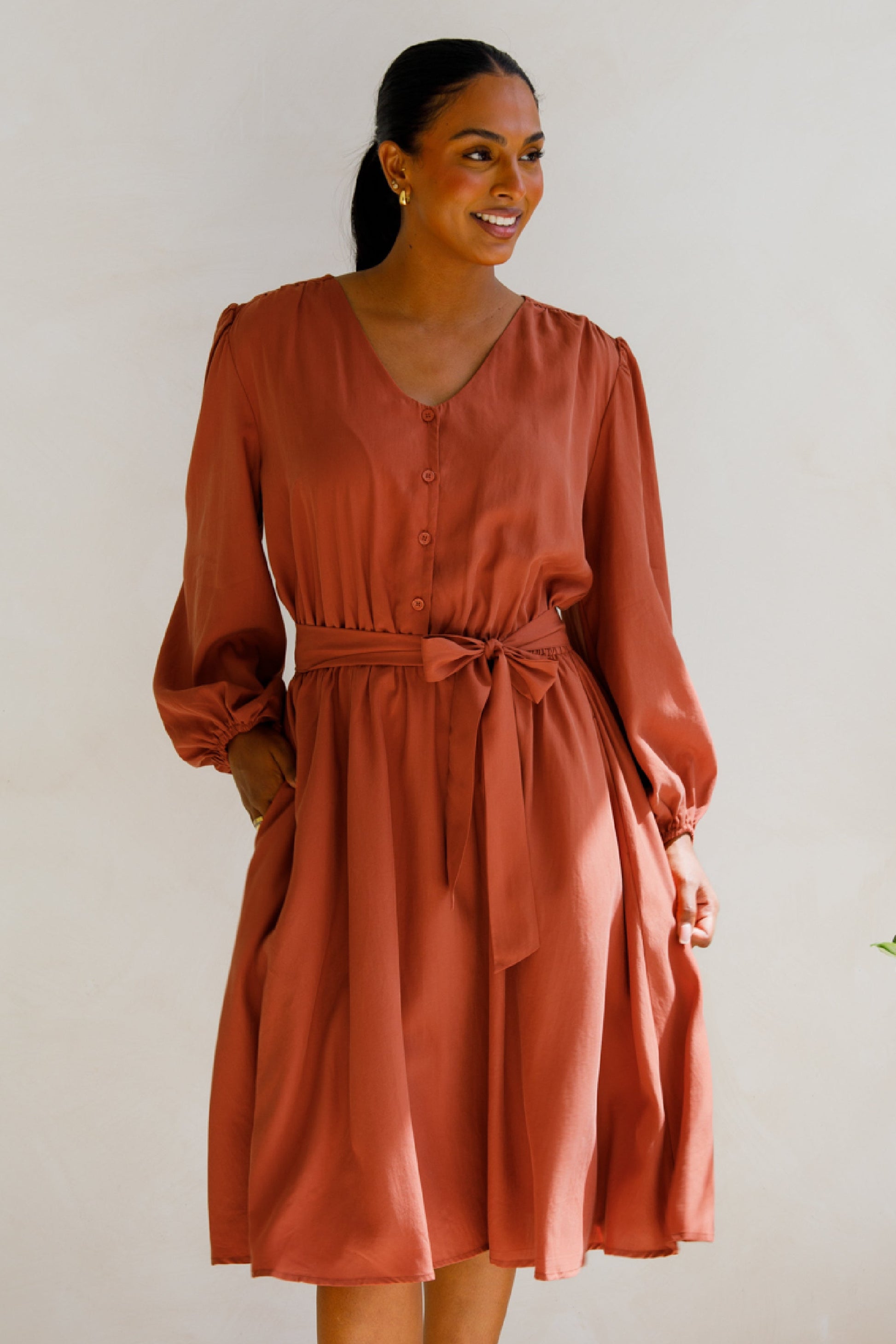 DAHLIA Tencel Long Sleeve Midi Dress | Auburn | FINAL SALE