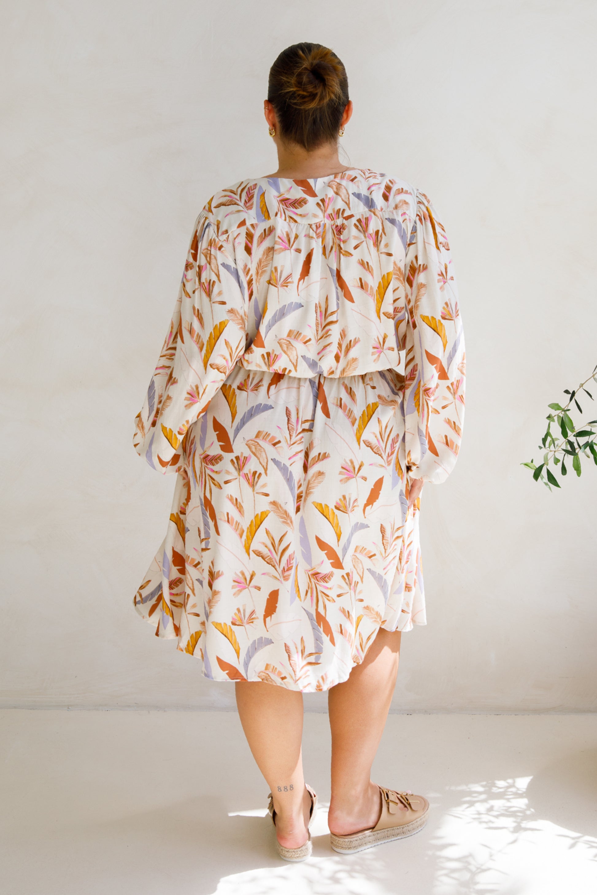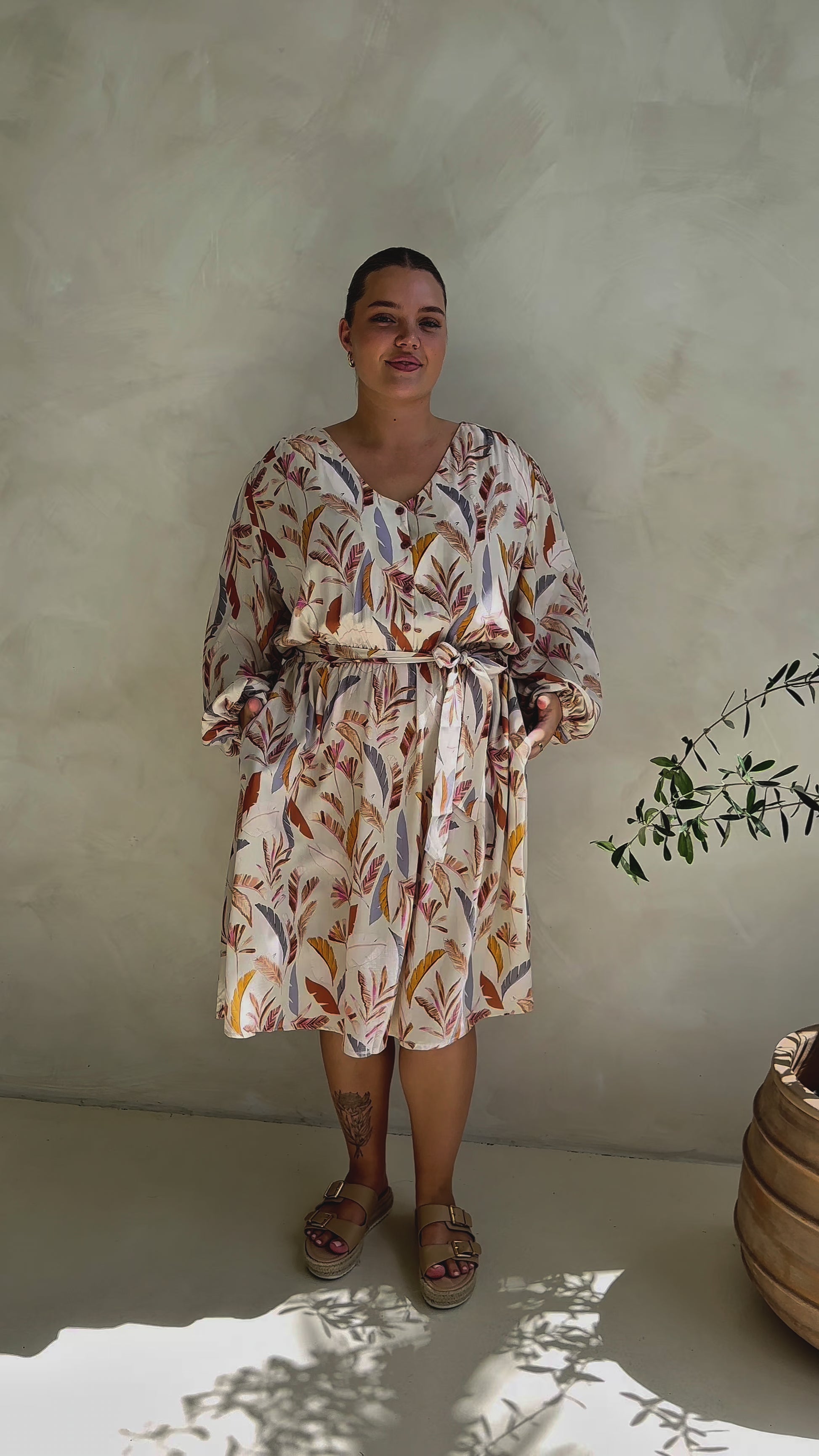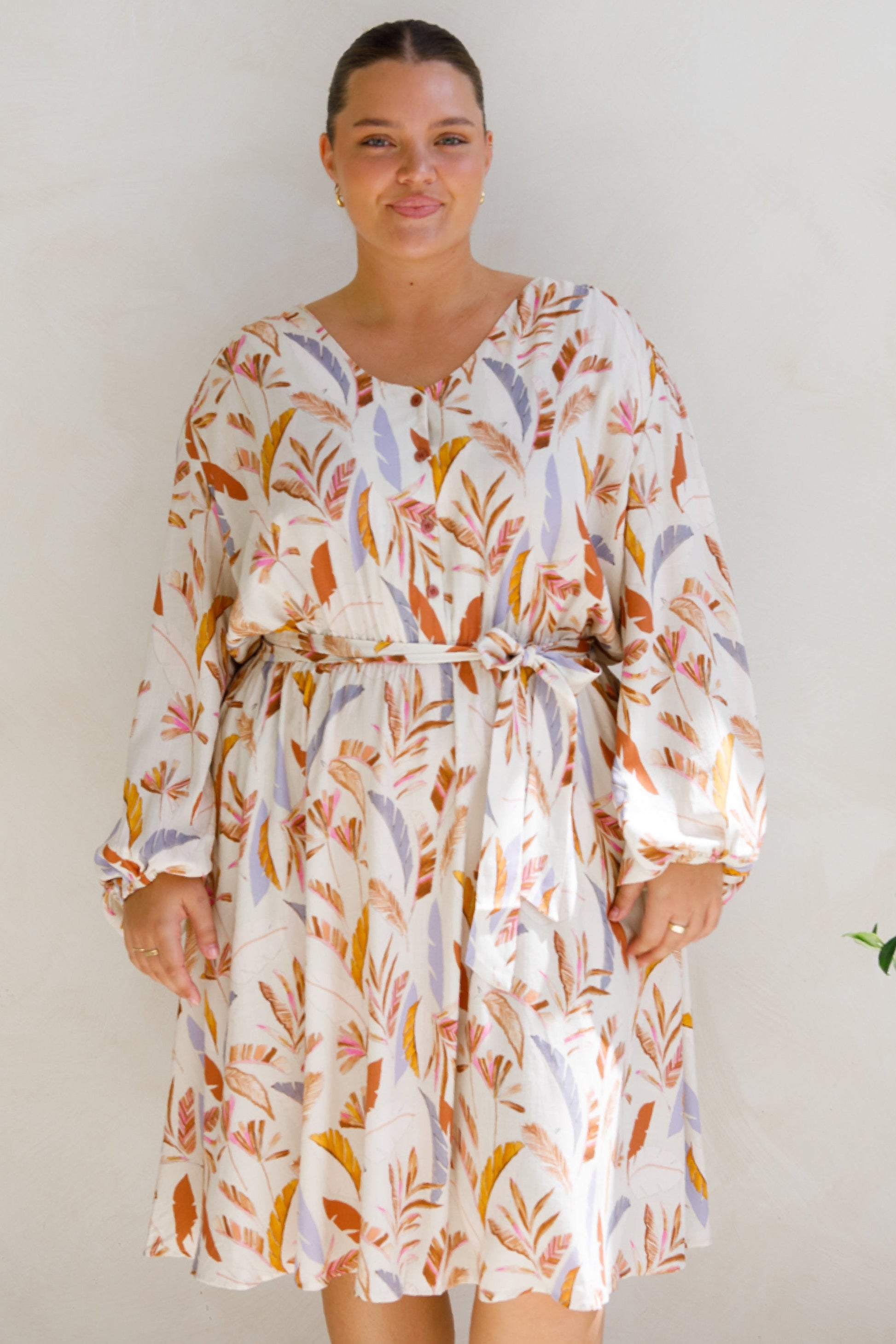 The Dahlia Dress offers effortless style with its midi-length, V-neckline, and functional button detail. An optional tie and elastic waistband provide a customisable fit, while the A-line silhouette and in-seam pockets add practicality. Crafted from soft, breathable, lightweight rayon in an exclusive PQ print, this dress is designed for both comfort and versatility.