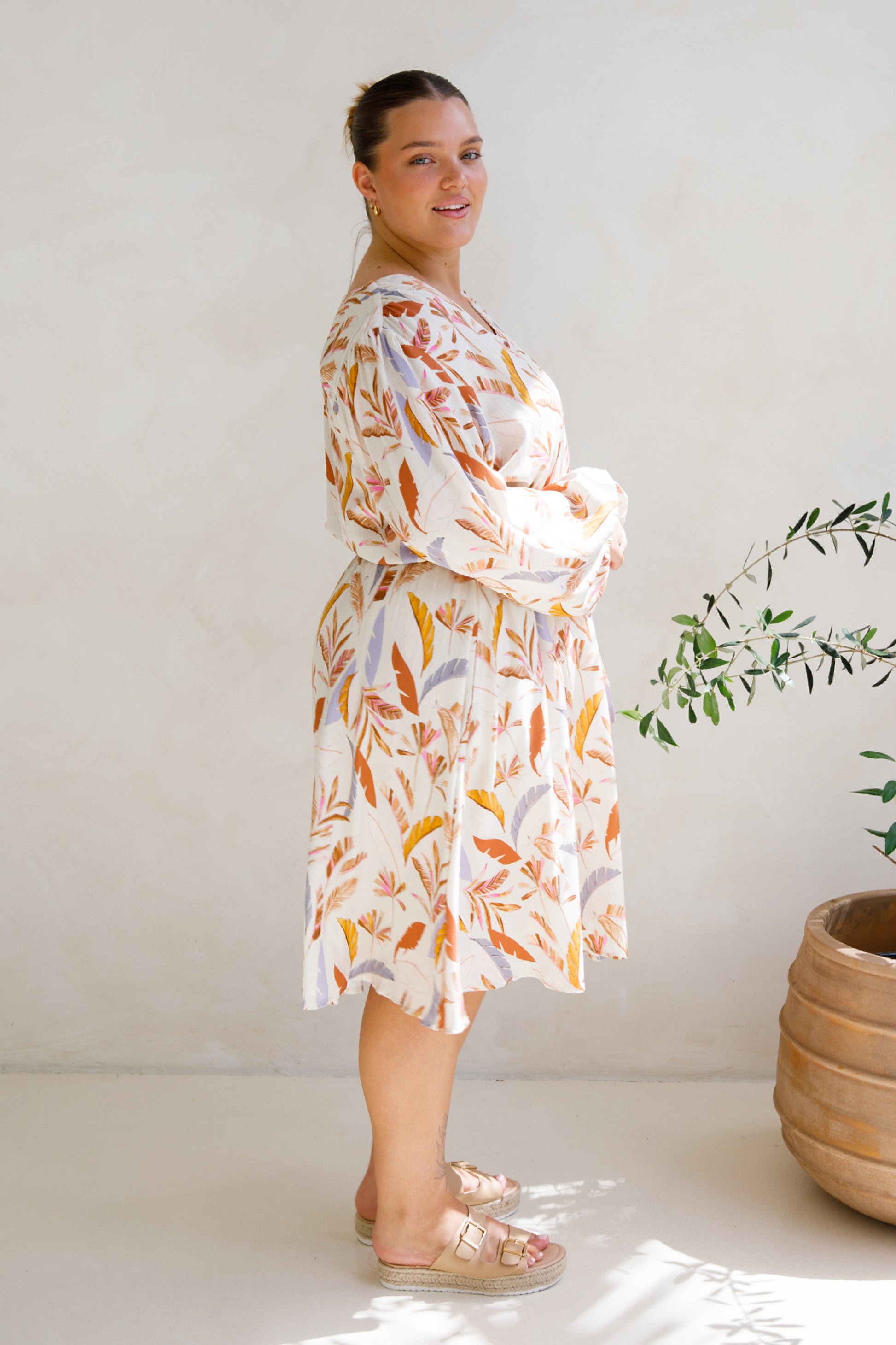 DAHLIA Rayon Long Sleeve Midi Dress | Light Palmetto | FINAL SALE