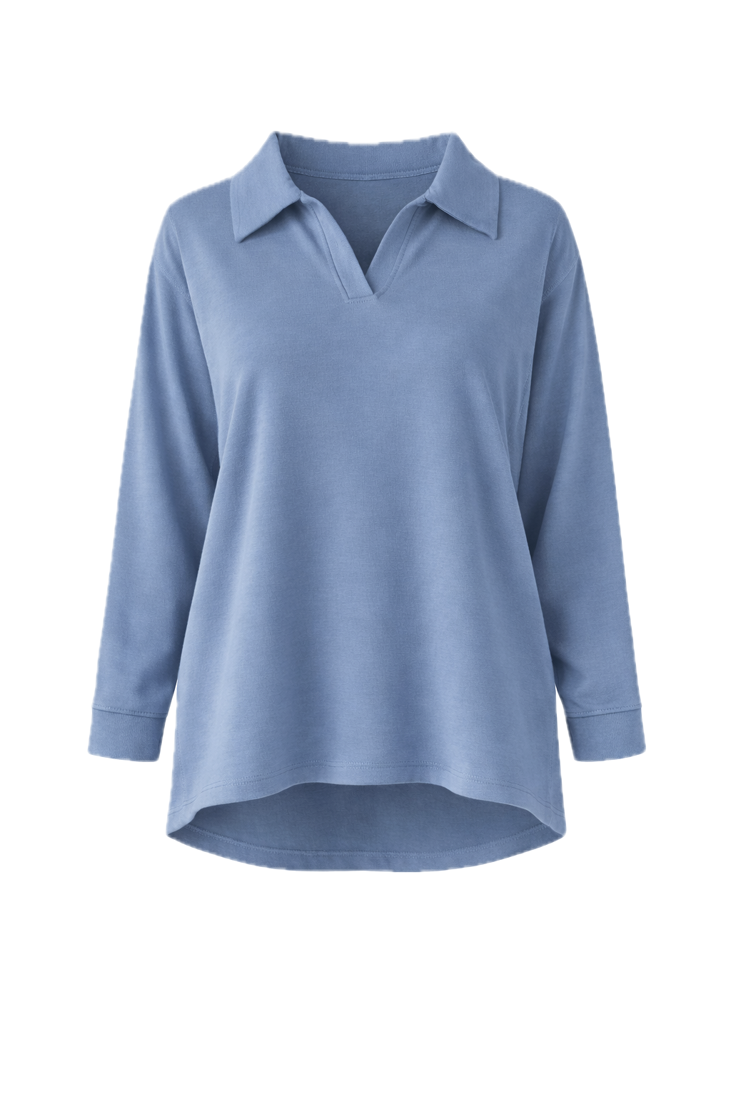 Elevate your loungewear collection with the Gigi Lounge Sweater, a refined piece that seamlessly blends comfort with understated elegance. Featuring a classic collared neckline, flowing long sleeves, and an artfully designed high-low hem, this sweater exudes sophistication. Crafted from our luxuriously soft signature fabric, it offers the perfect balance of relaxed ease and polished style for the discerning wearer.