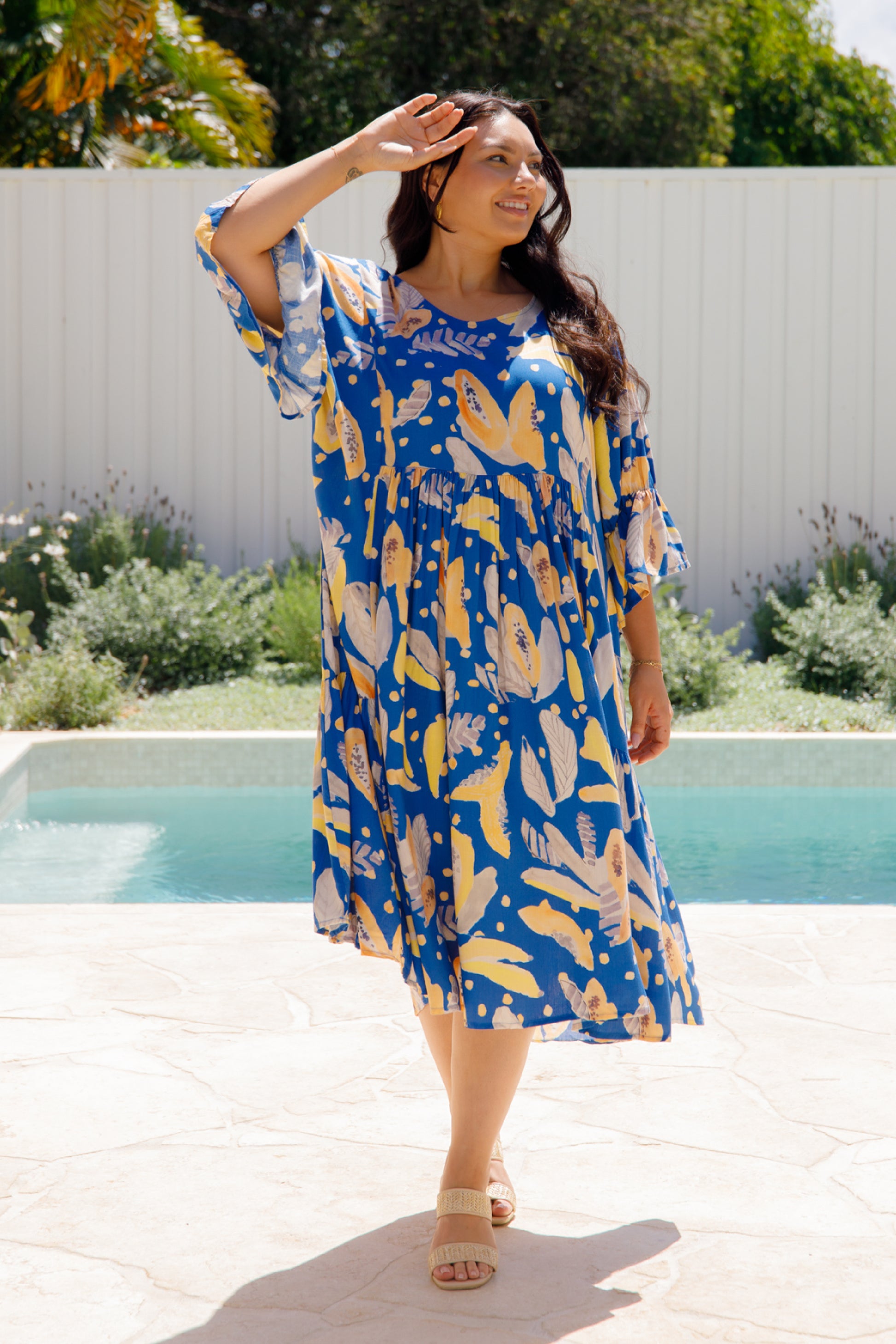 IVY Rayon Half Sleeve Classic/Midi Dress | Blue Fruit Punch | FINAL SALE