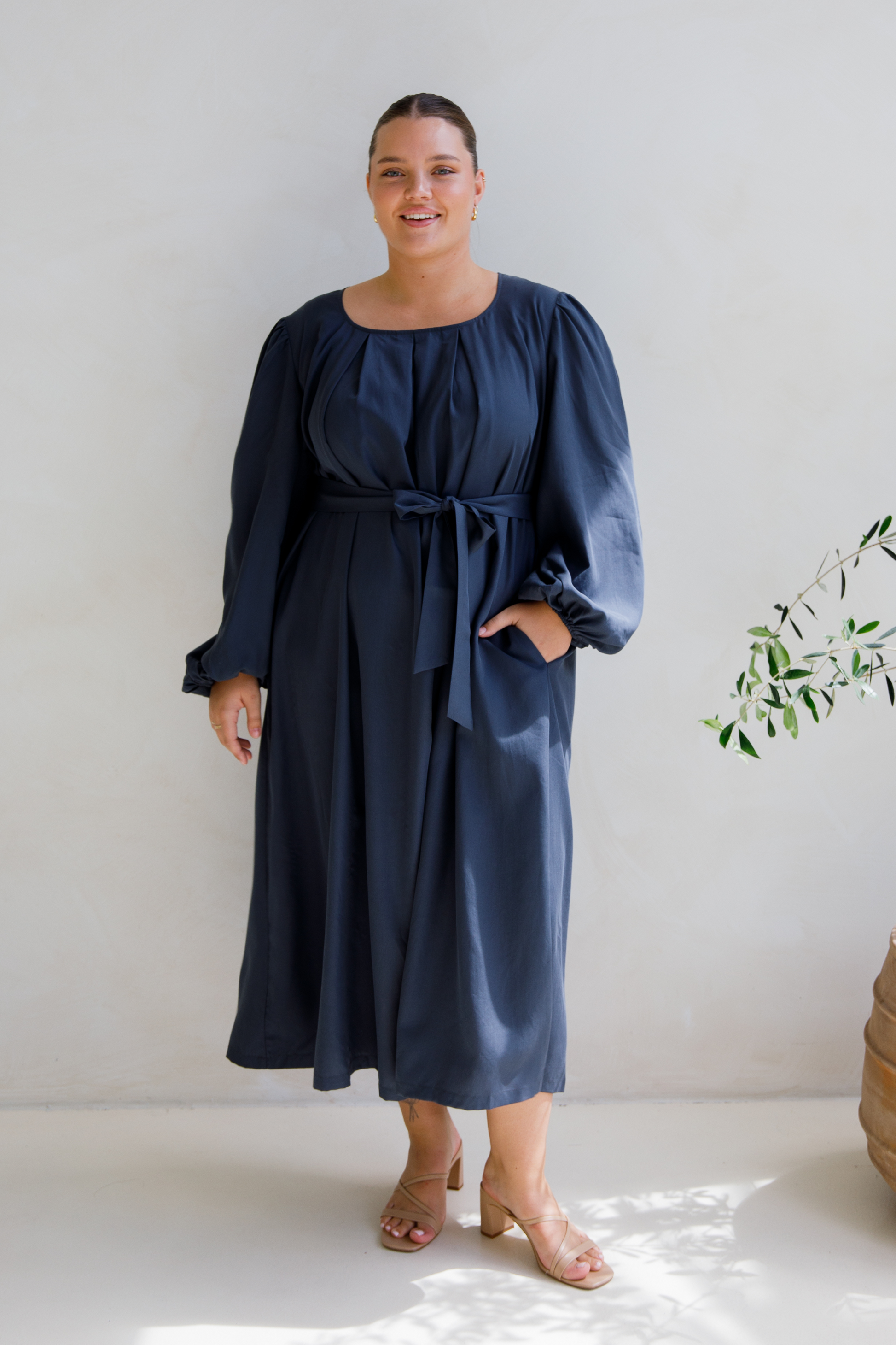 JADE Tencel Long Sleeve Classic/Mid Dress | Storm | FINAL SALE