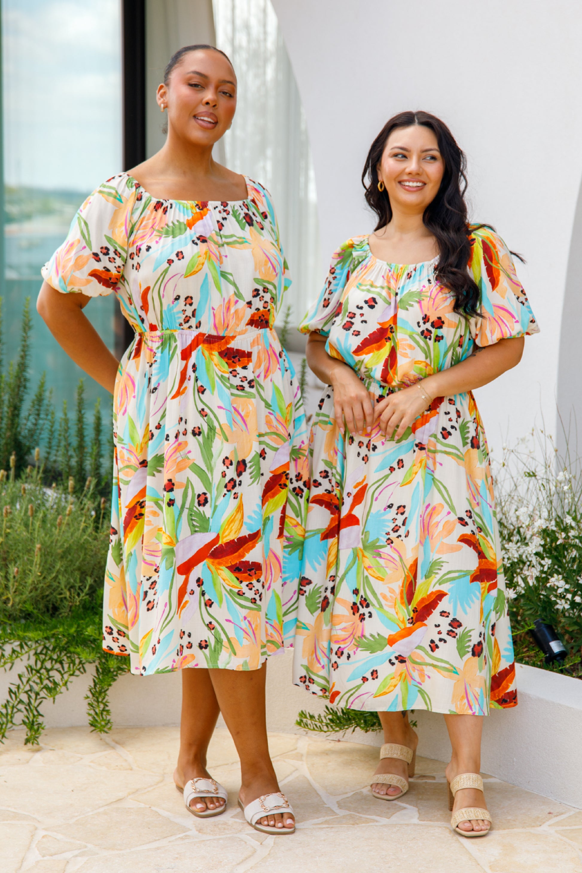 MARLEY MULTIWAY Rayon Half Sleeve Midi Dress | Castaway | FINAL SALE