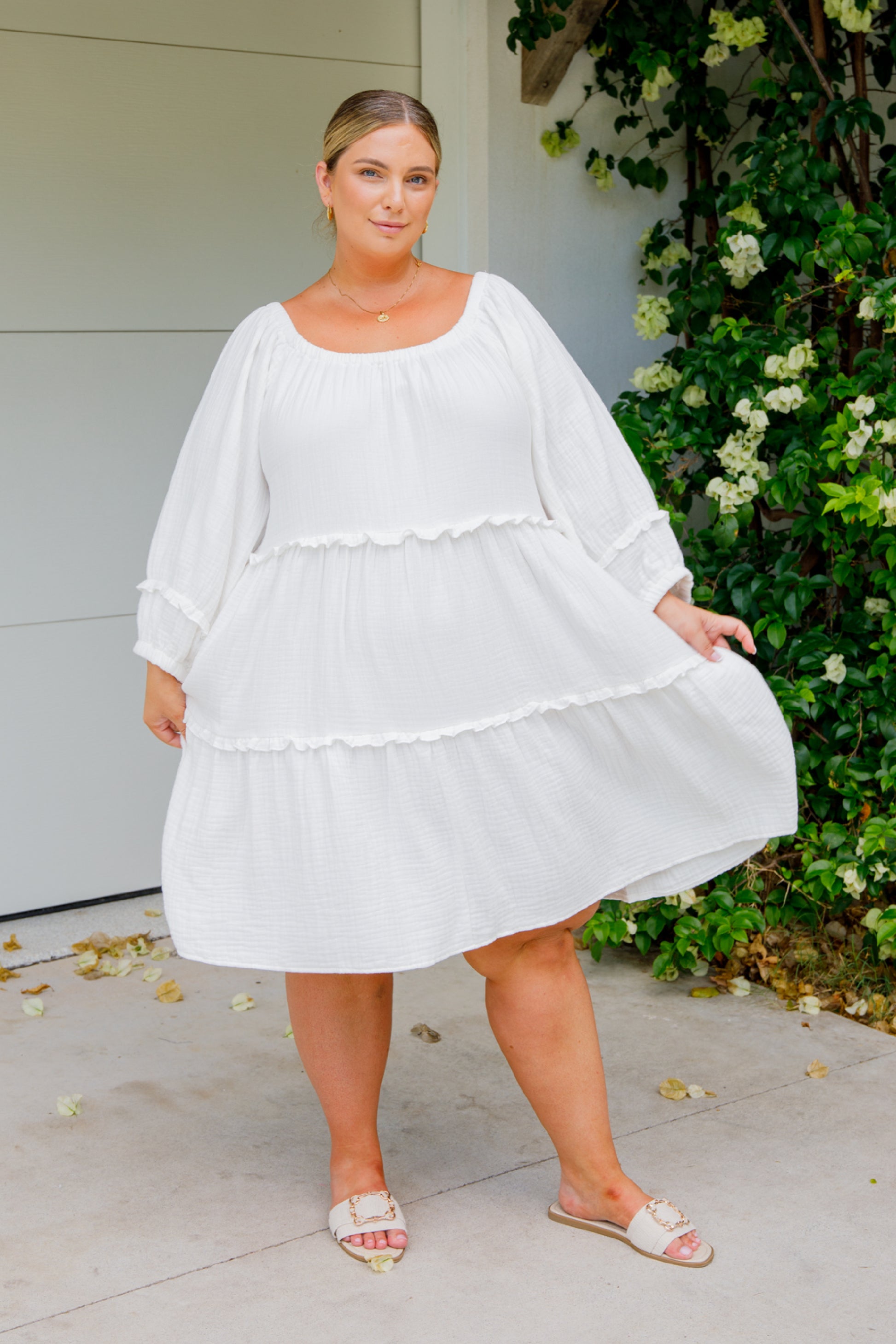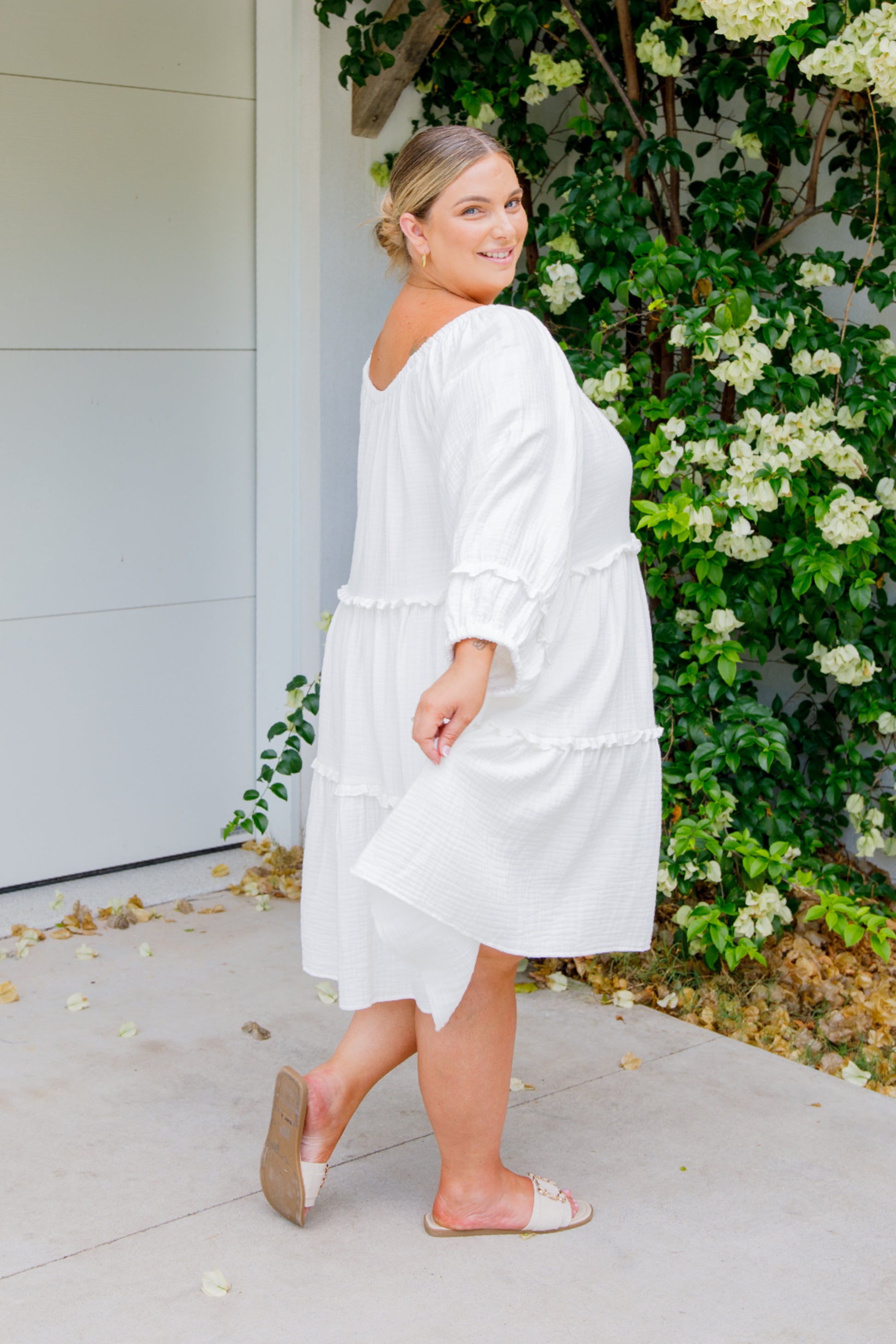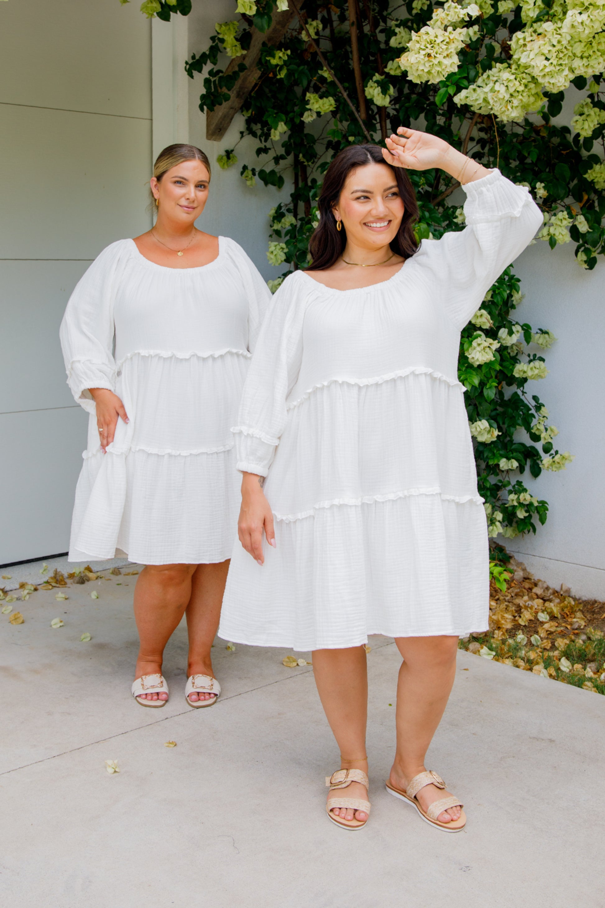MYA MULTIWAY Cotton Long Sleeve Shortline Dress | White | FINAL SALE
