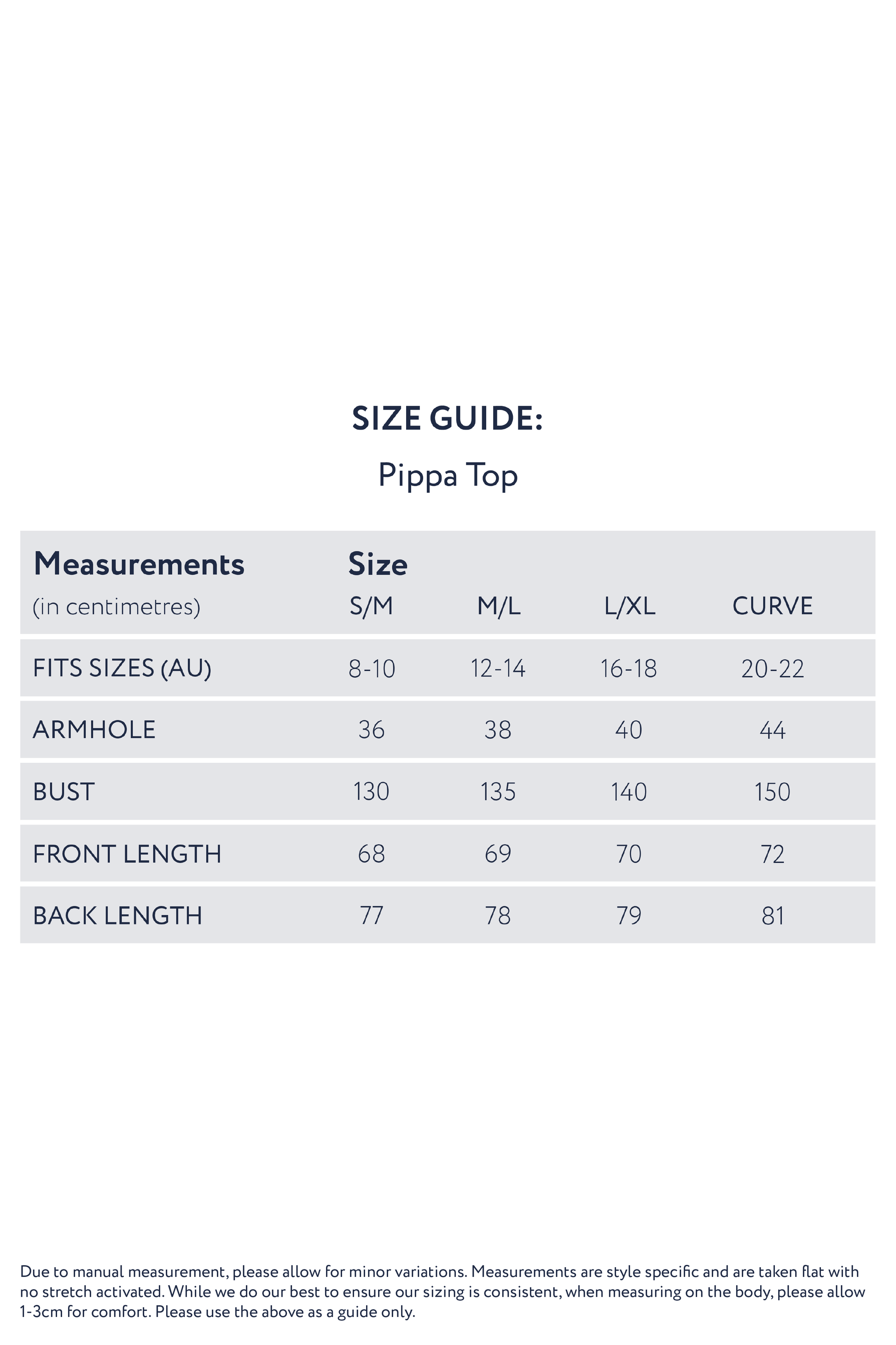 Because each silhouette is unique, sizing may vary from style to style. Please refer to the product description for specific garment measurements. Our size recommendations are based on Australian sizing, and wherever possible, we include bust, length, and sleeve opening measurements to help you find your perfect fit.