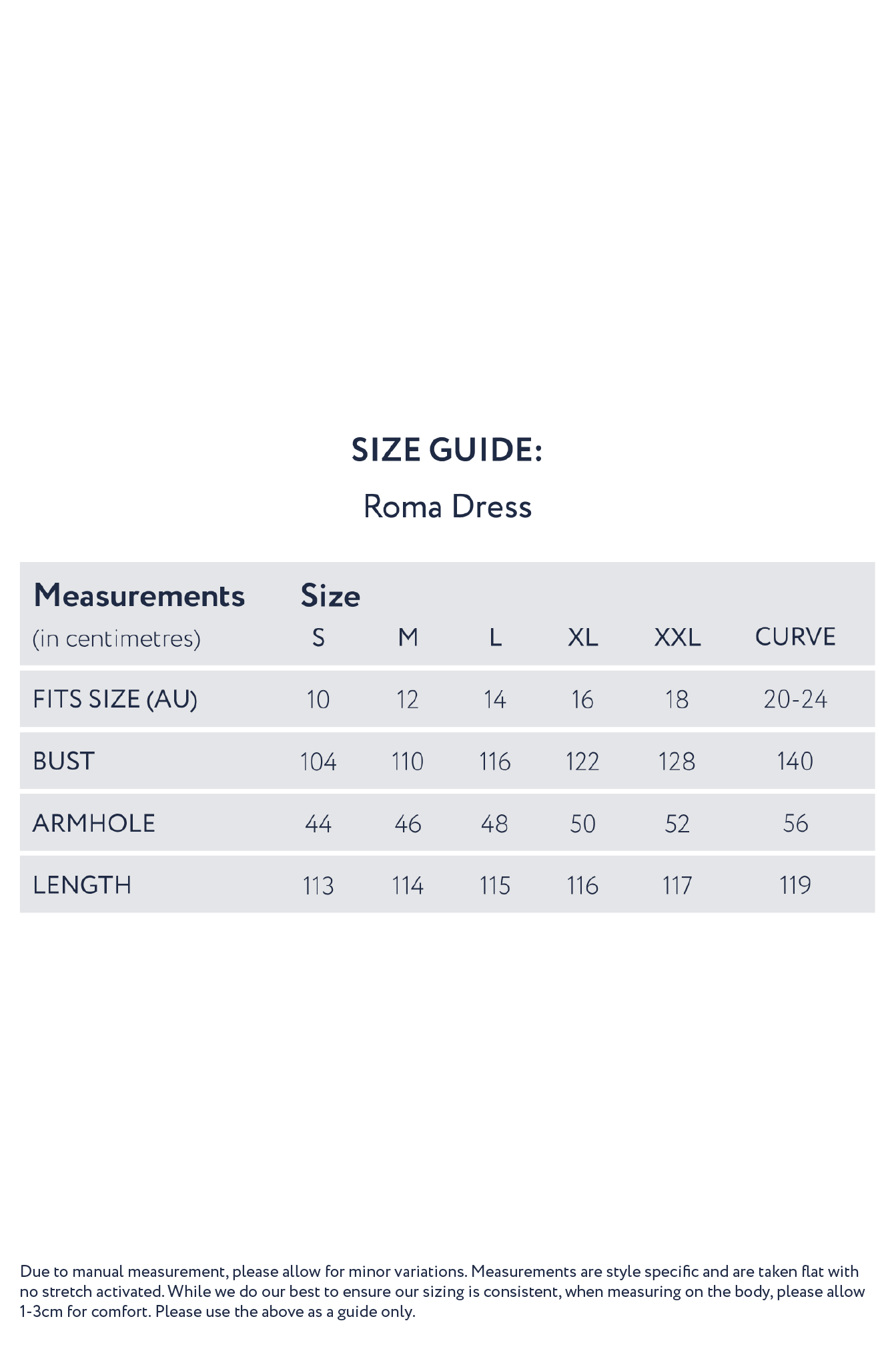 Because each silhouette is unique, sizing may vary from style to style. Please refer to the product description for specific garment measurements. Our size recommendations are based on Australian sizing, and wherever possible, we include bust, length, and sleeve opening measurements to help you find your perfect fit.