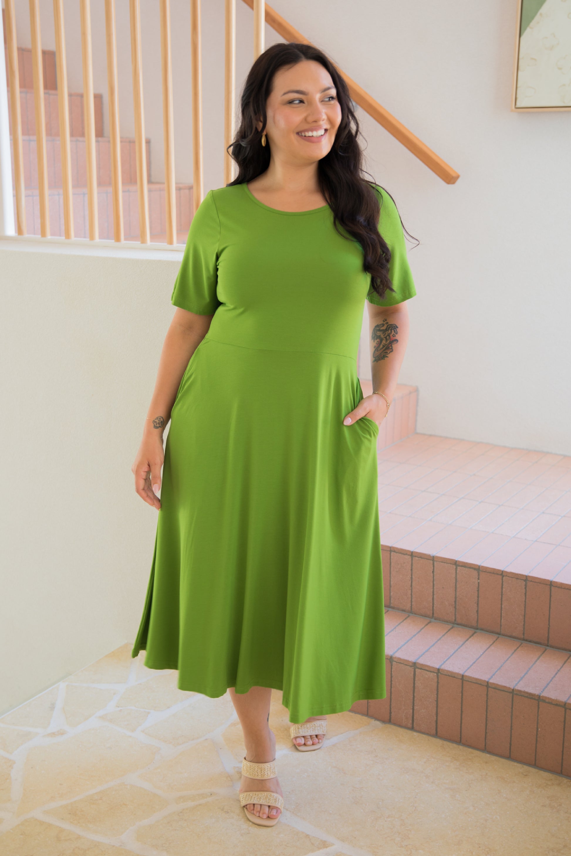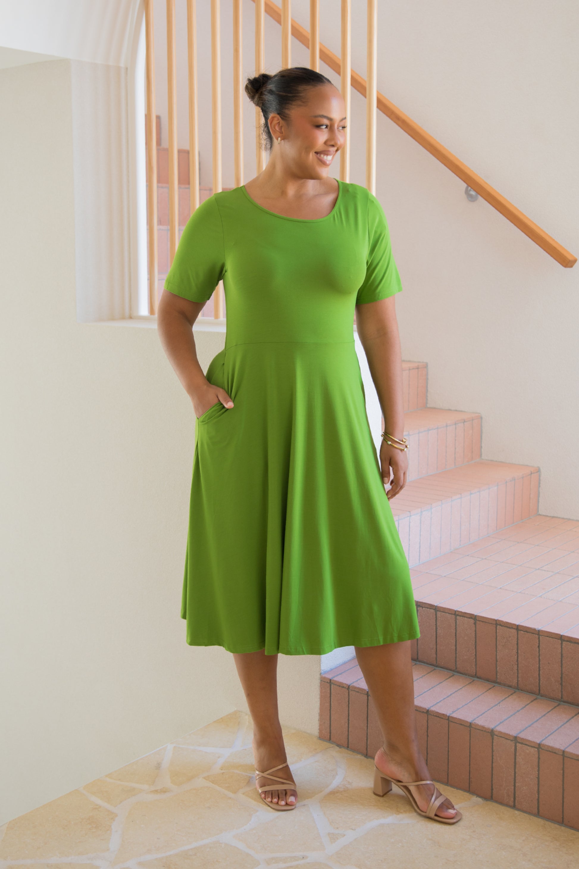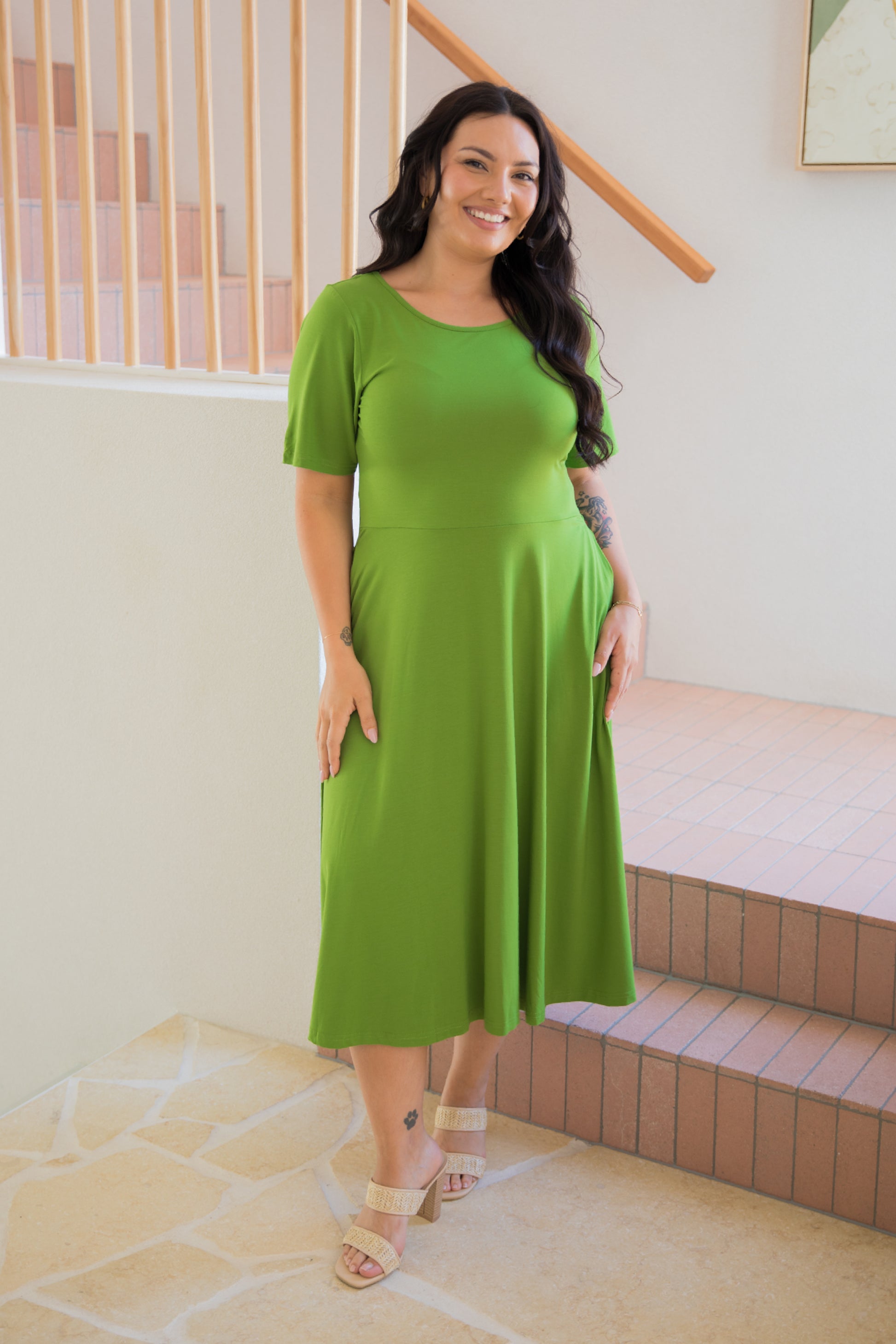 PENELOPE Bamboo Short Sleeve Classic/Midi Dress | Cucumber Martini | FINAL SALE