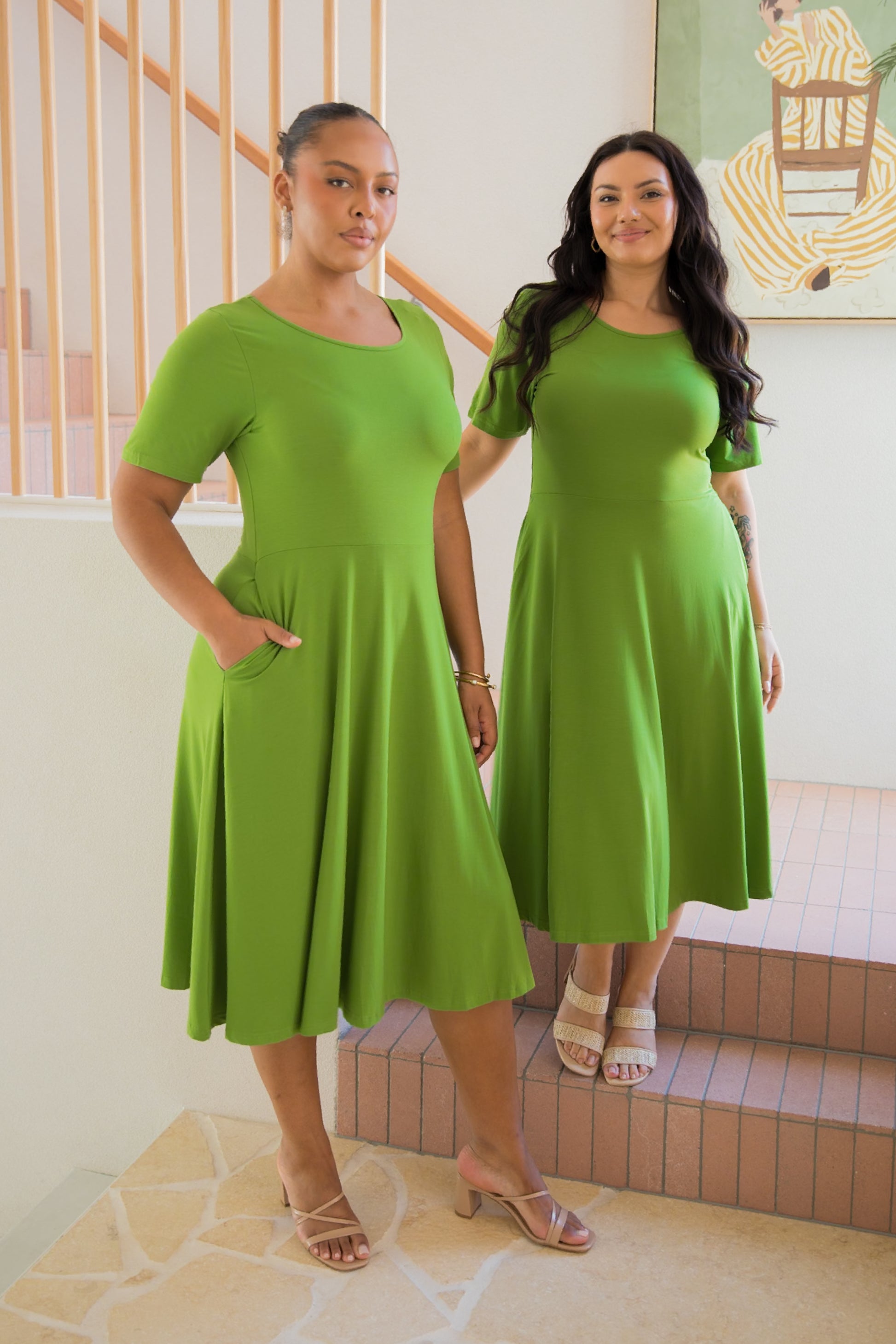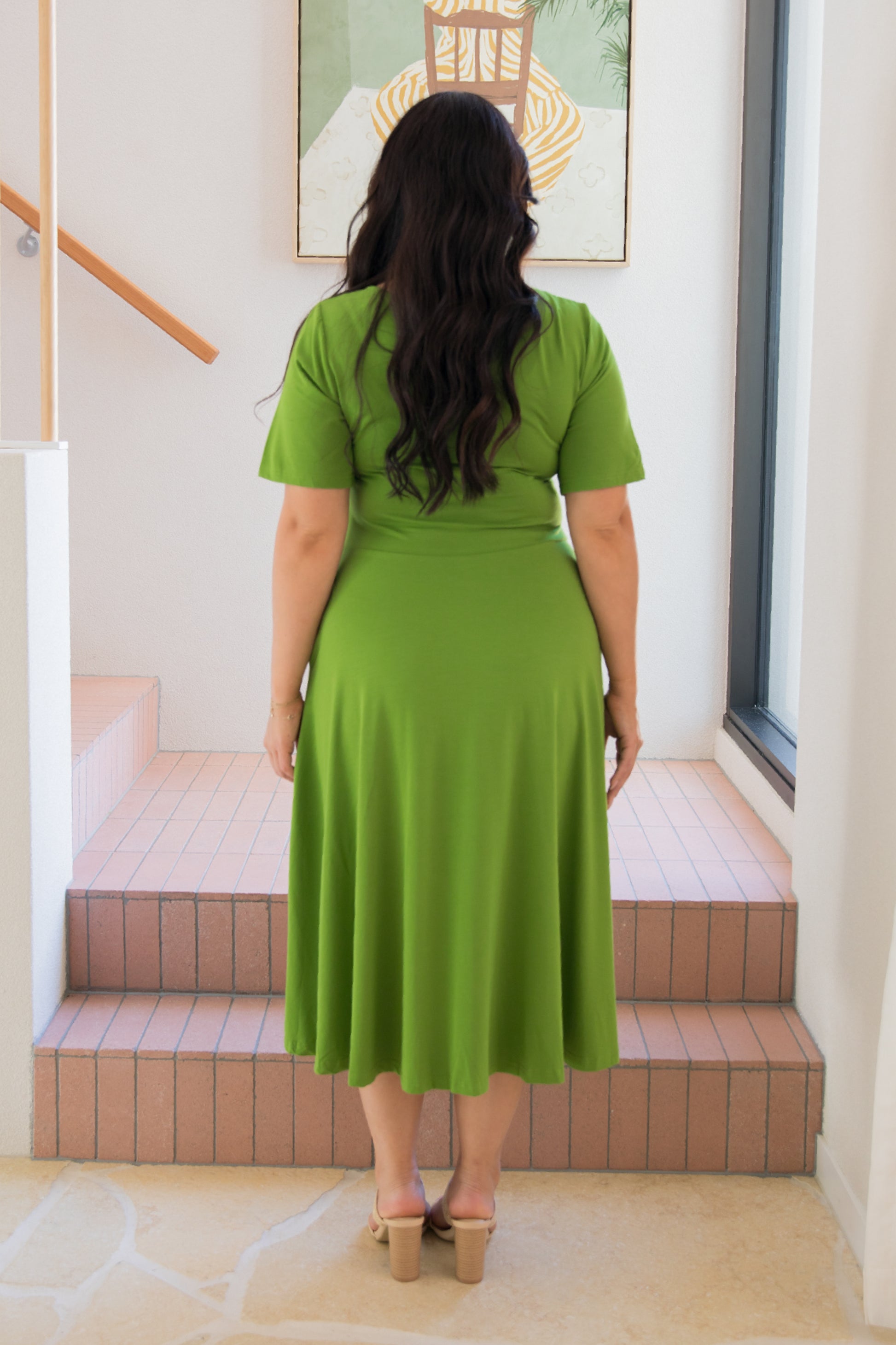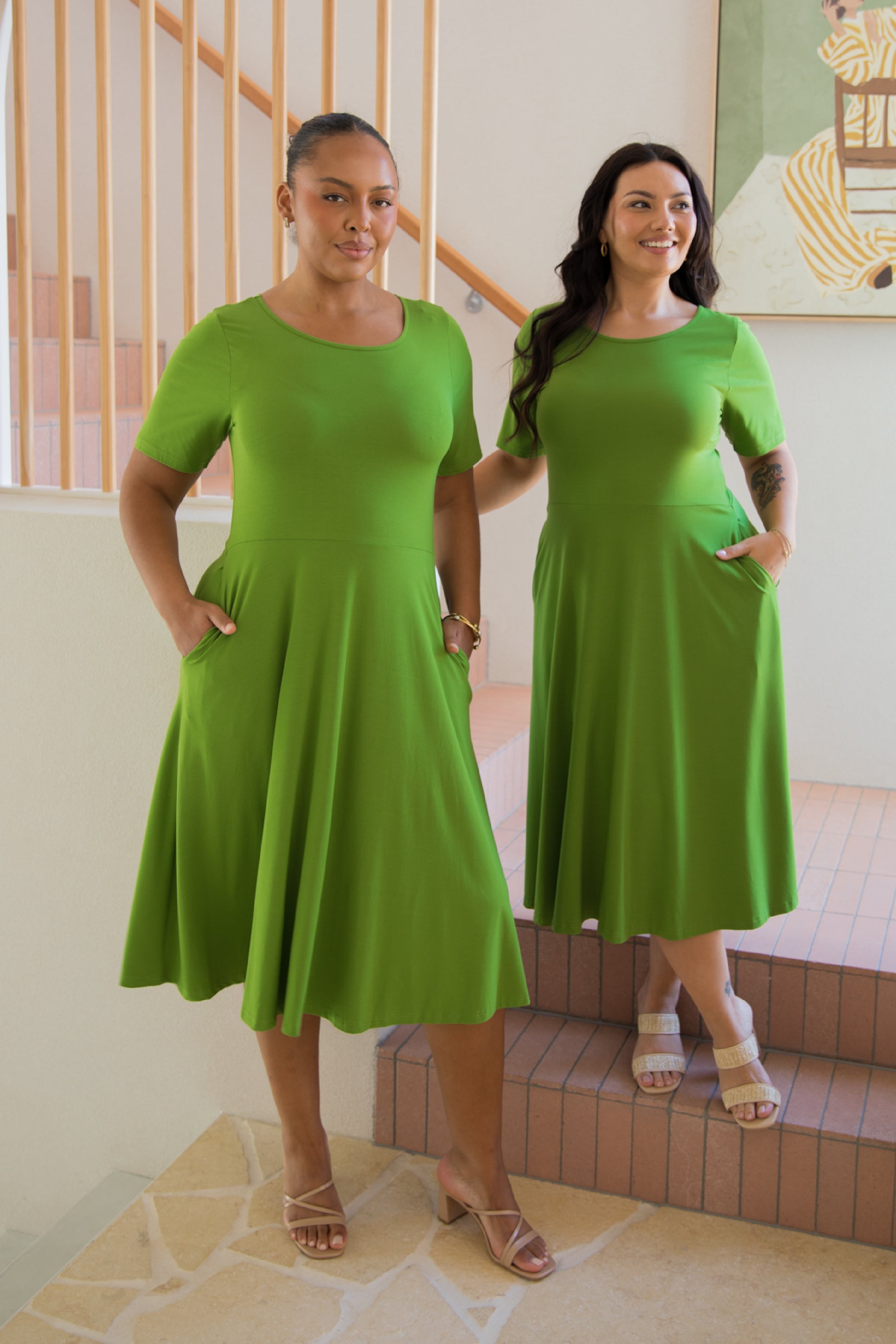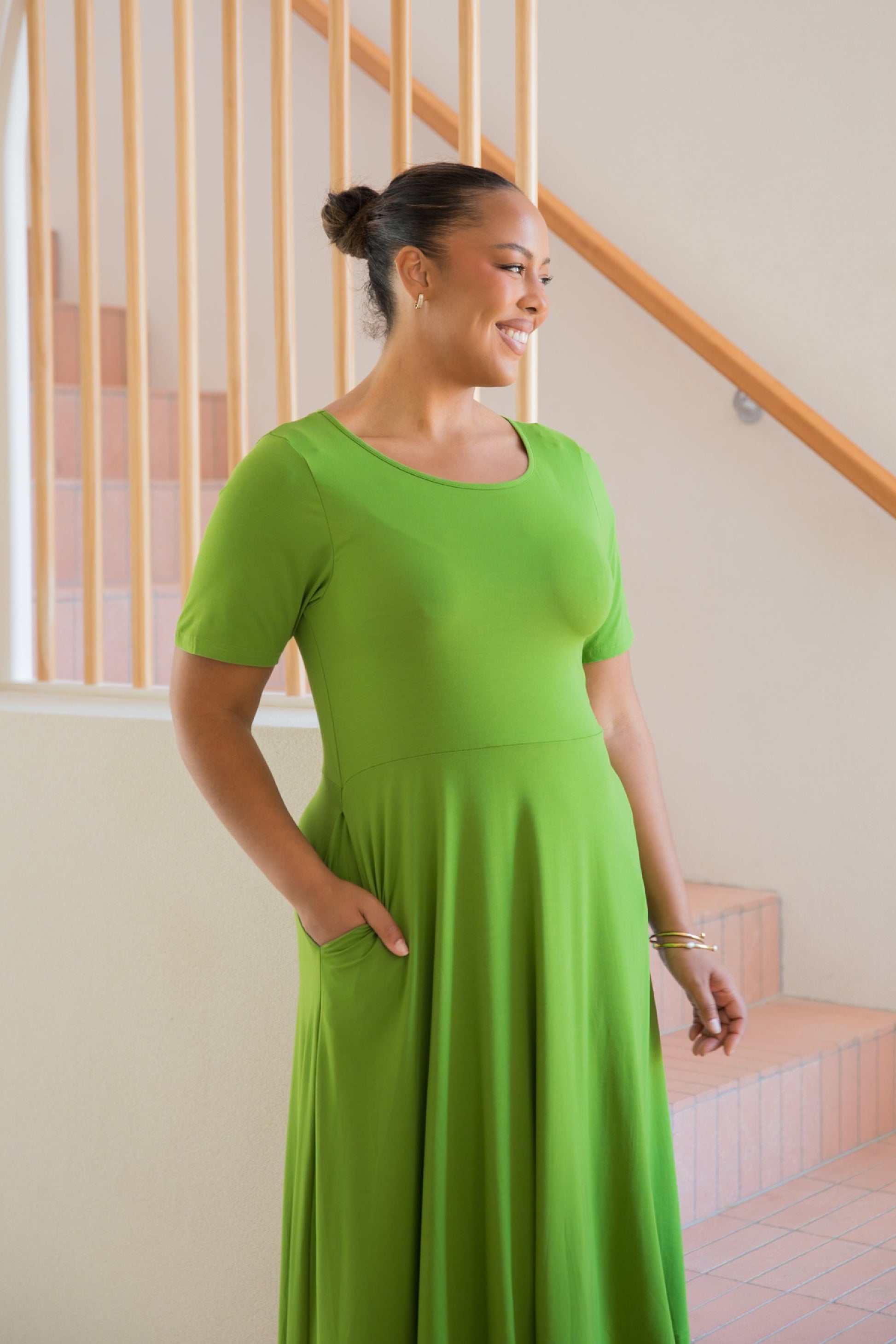 PENELOPE Bamboo Short Sleeve Classic/Midi Dress | Cucumber Martini | FINAL SALE