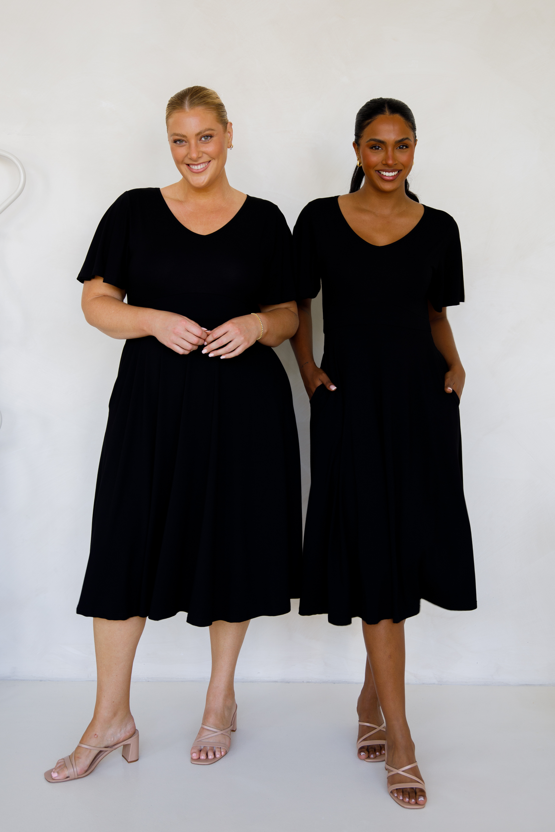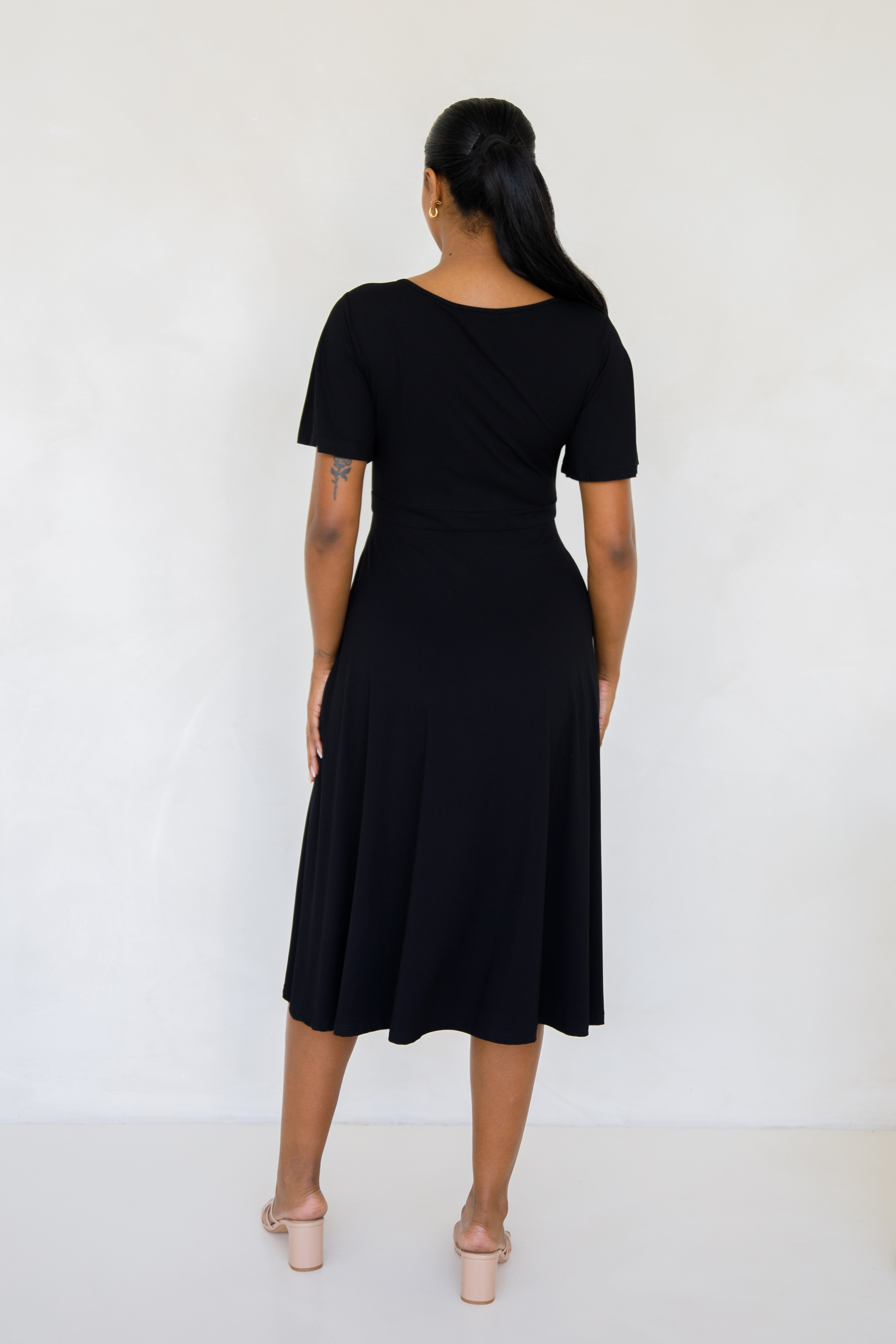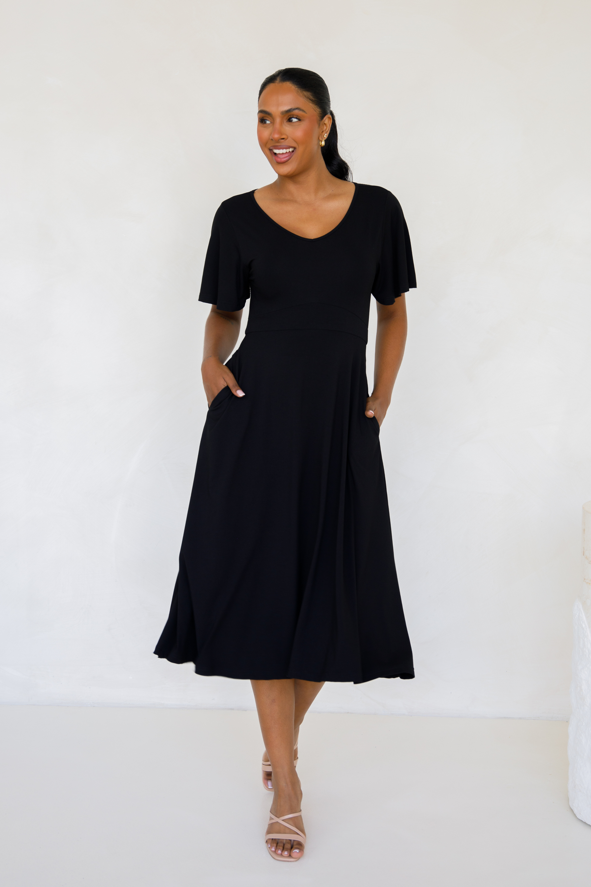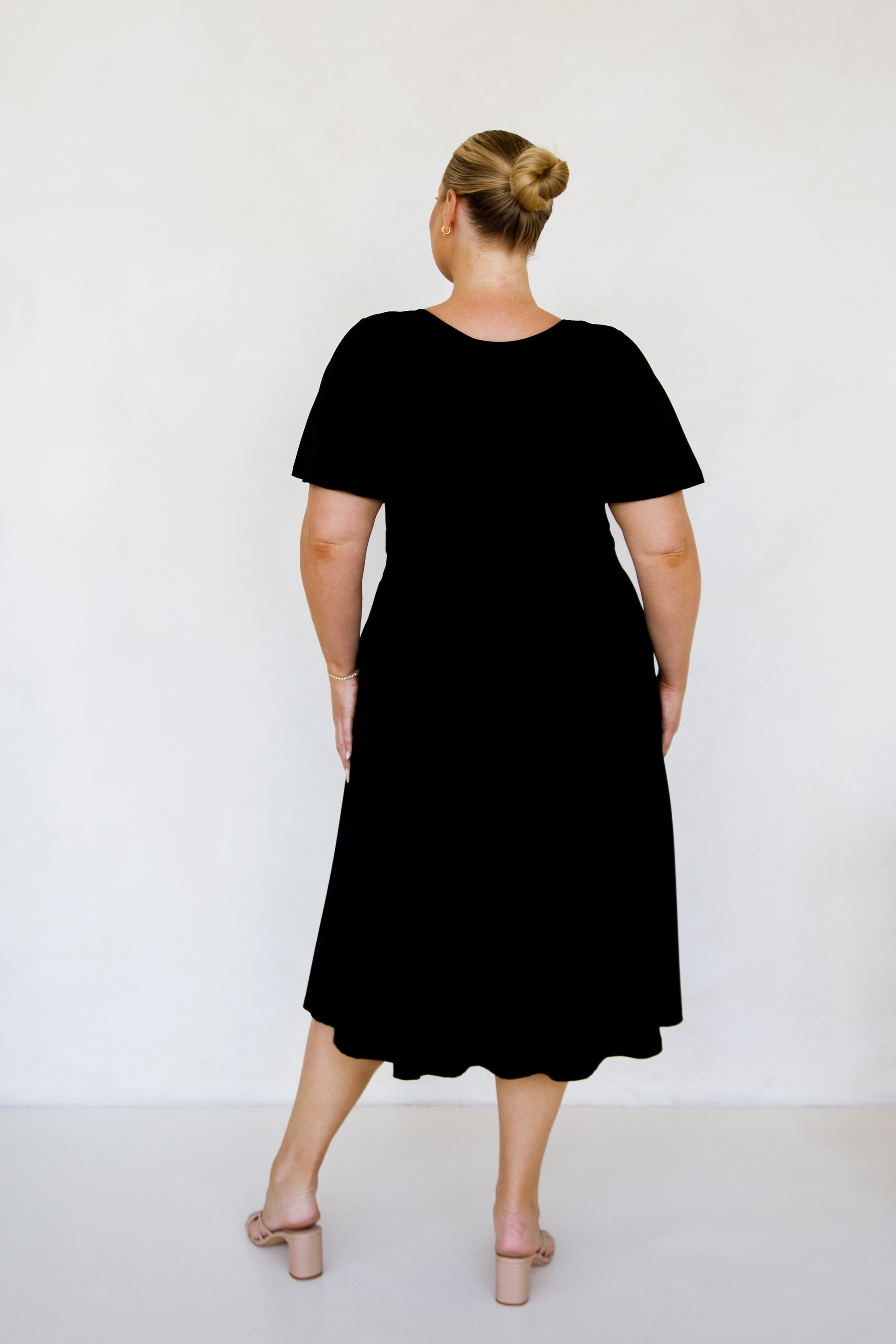 SIENA Bamboo Short Sleeve Classic/Midi Dress | Black | FINAL SALE