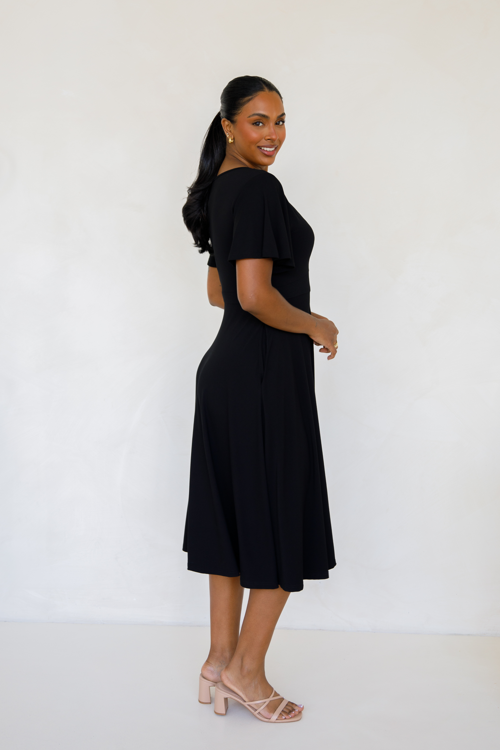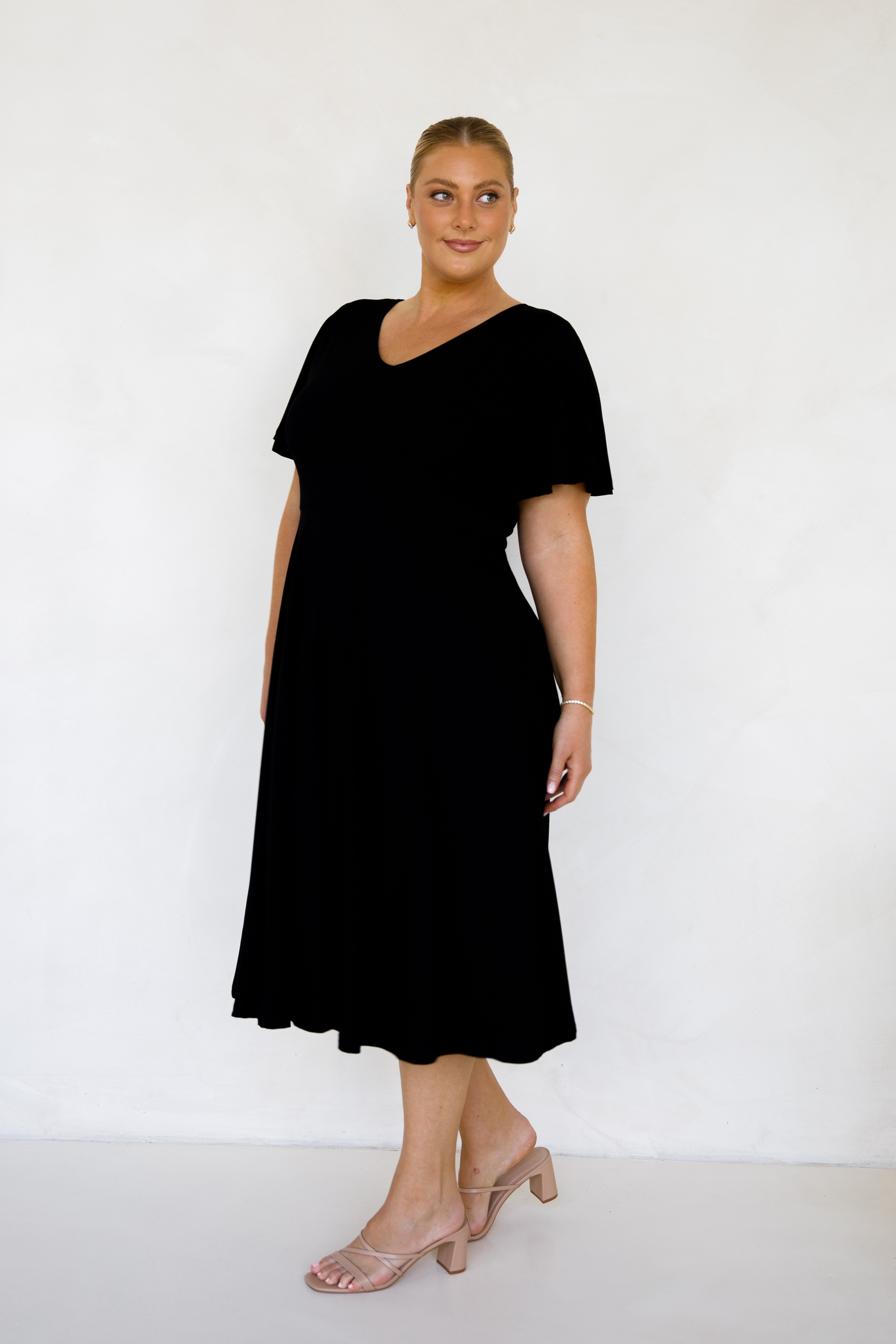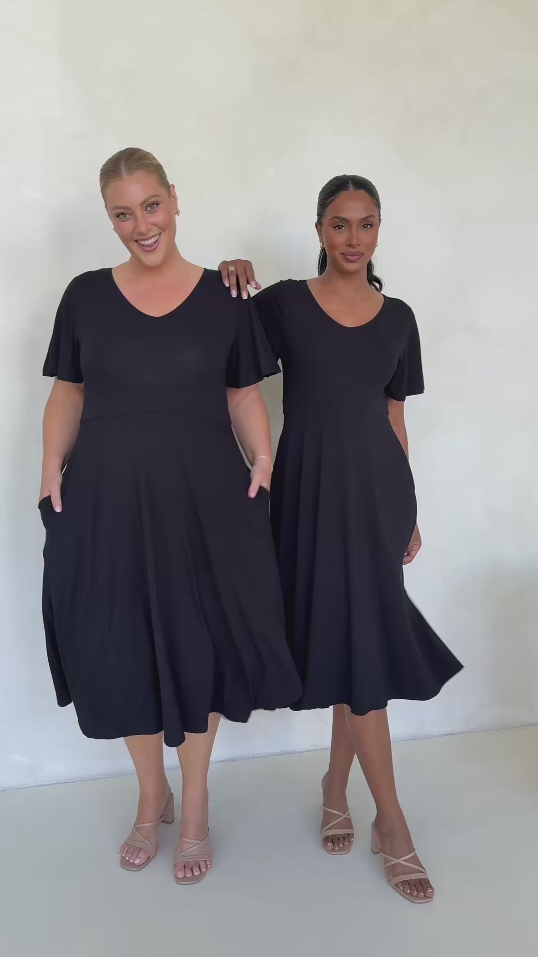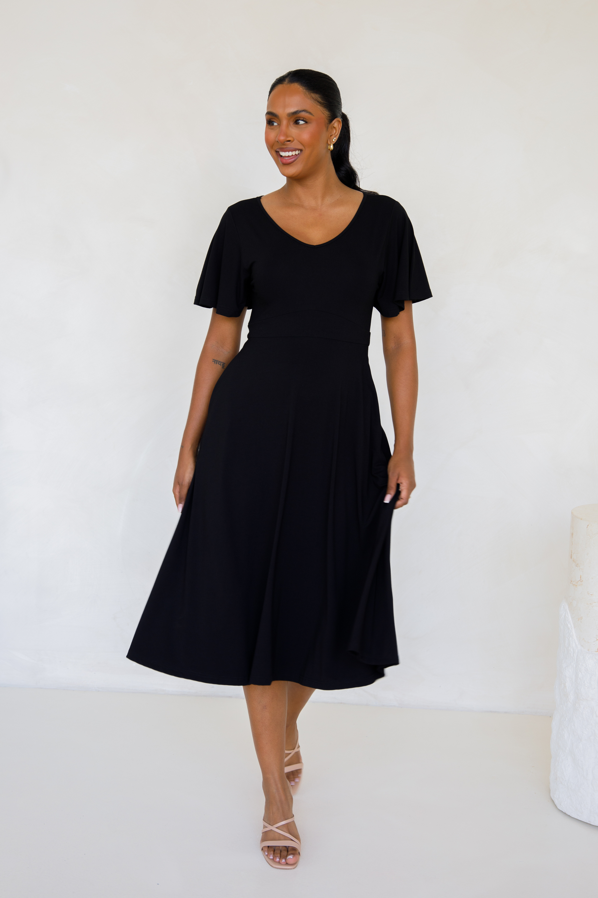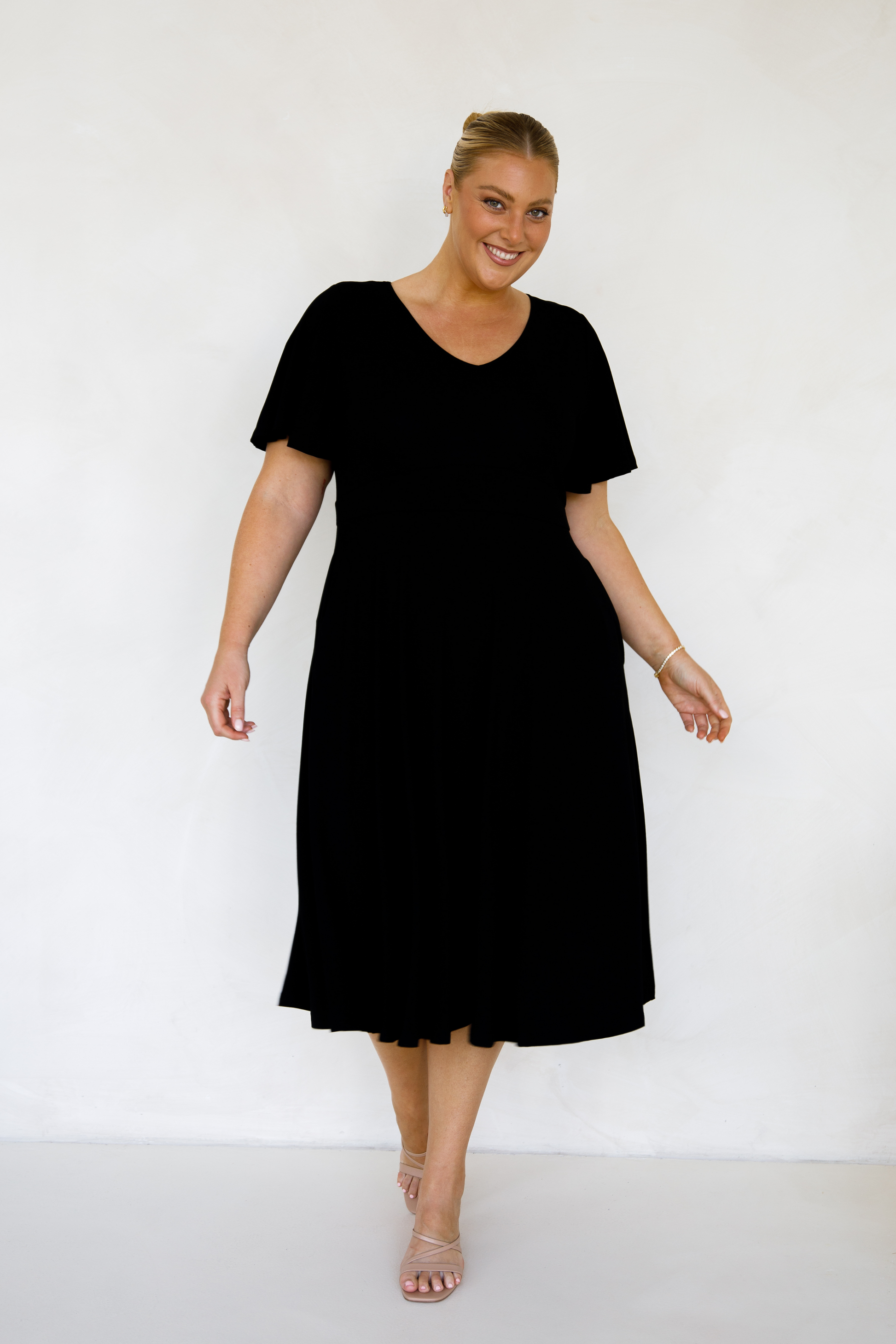 SIENA Bamboo Short Sleeve Classic/Midi Dress | Black | FINAL SALE
