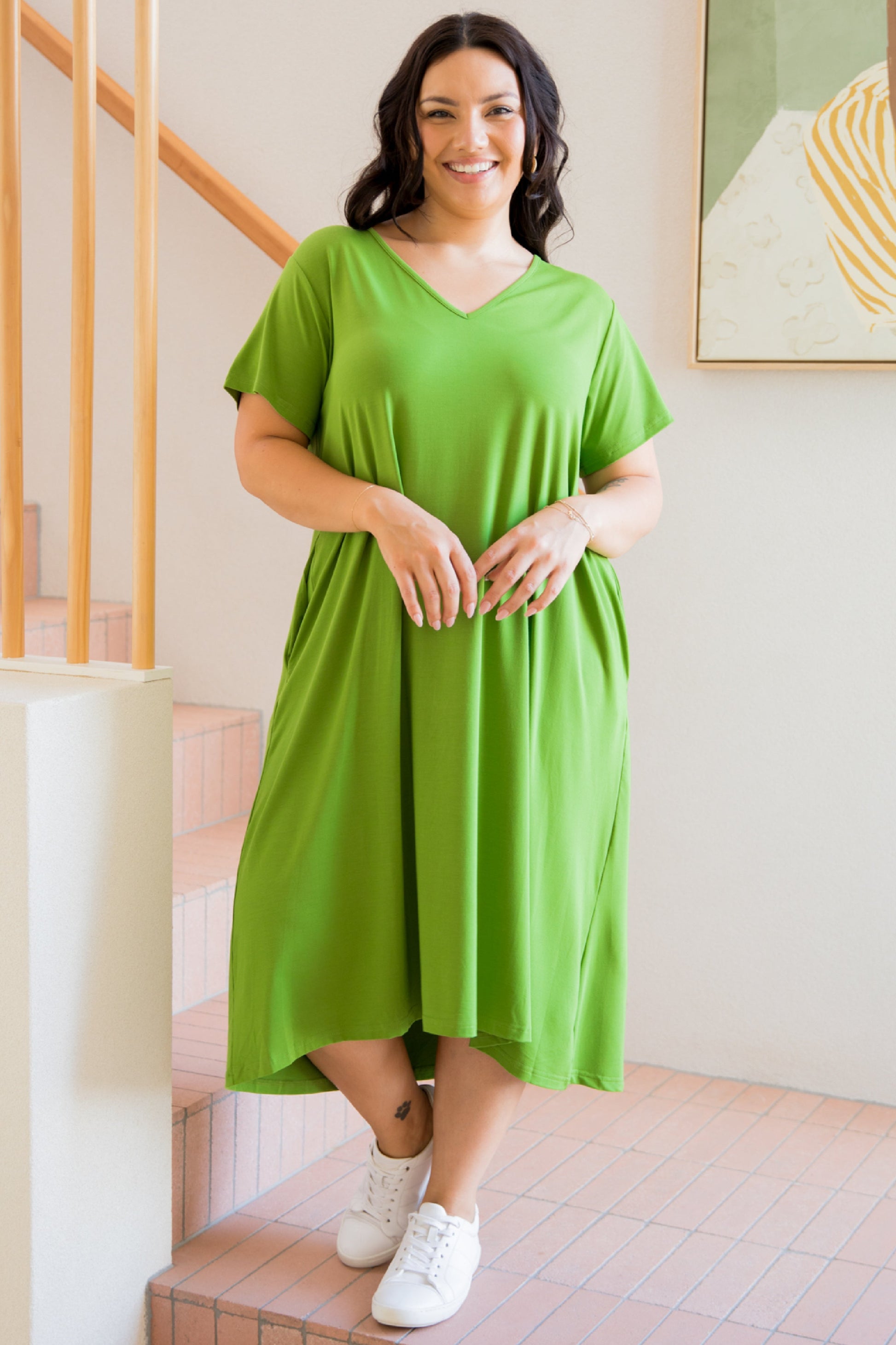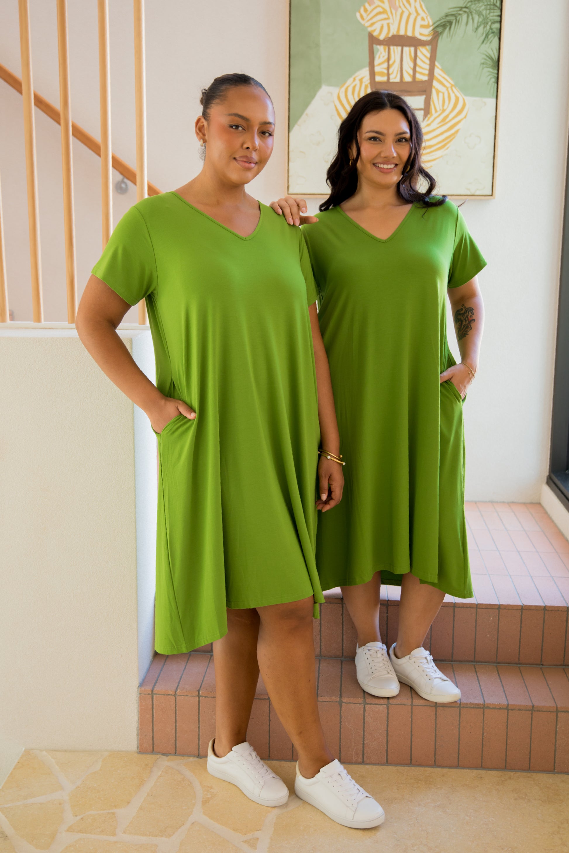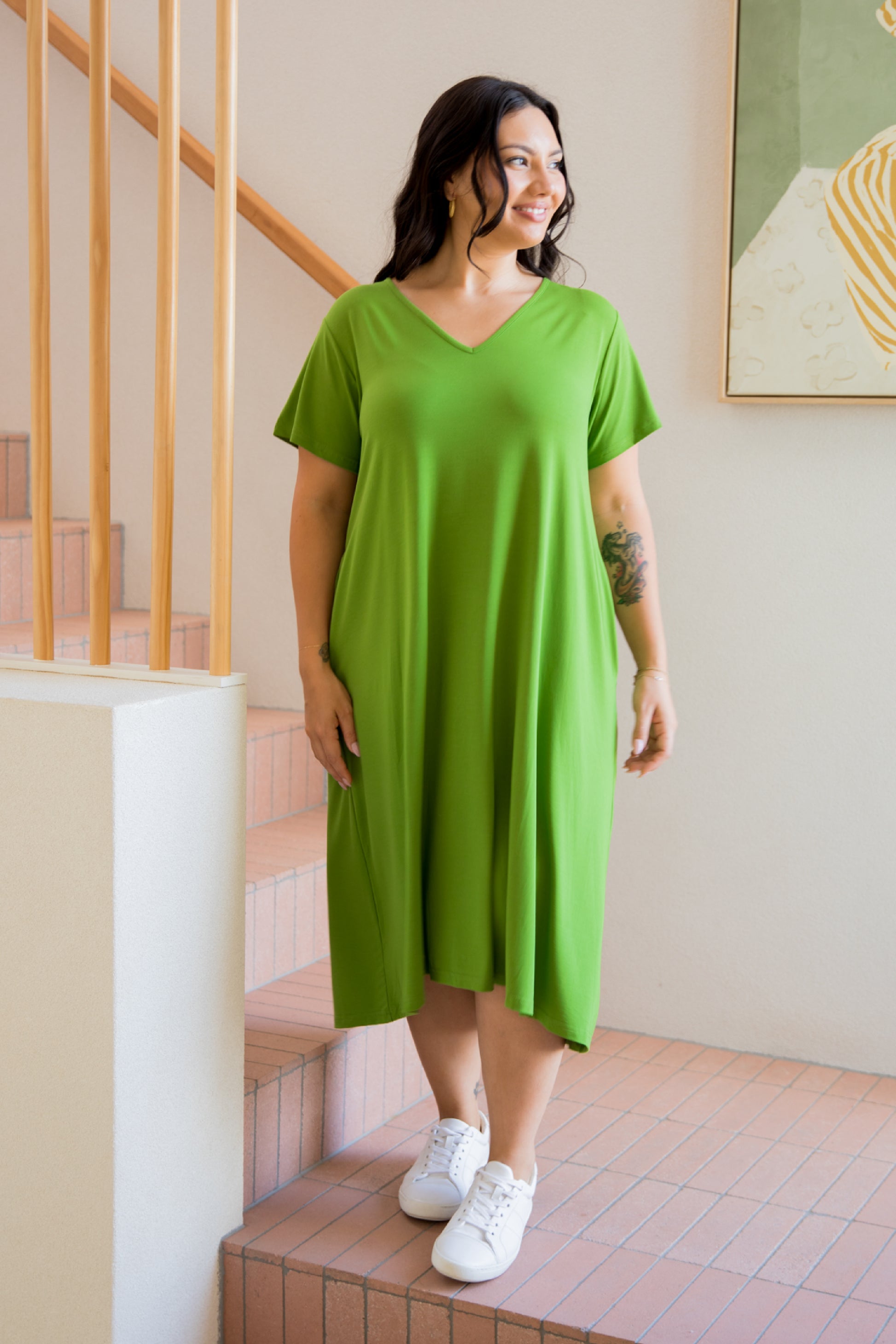 Crafted from our signature bamboo fabric that’s luxuriously soft and incredibly comfortable, this versatile dress is designed to create a flattering drape over the body and features a V-shaped neckline, t-shirt style short sleeves and comfy side pockets.