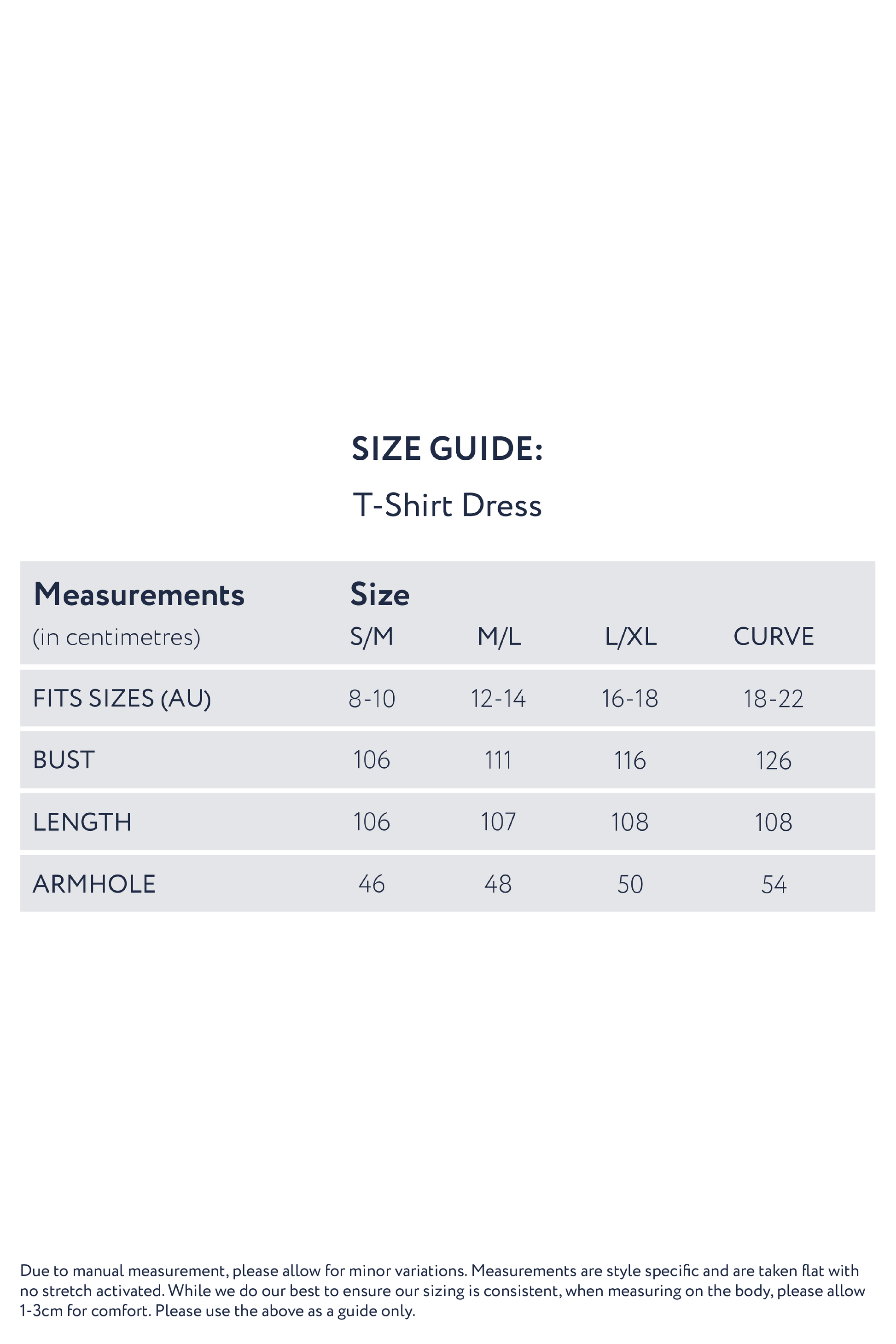 • We recommend choosing your size for the T-Shirt Dress based on the bust measurements for your body